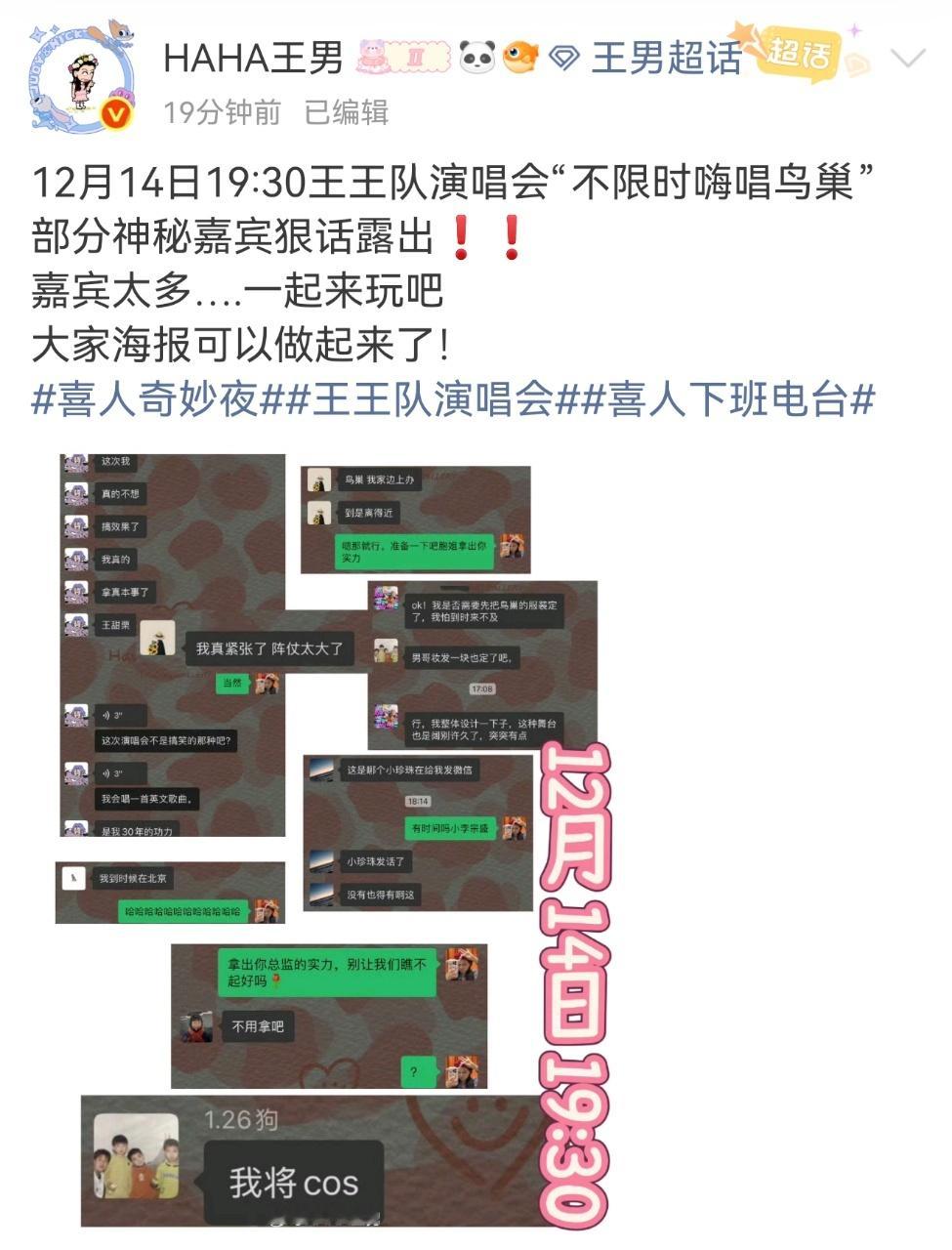 王男直播预告嗨唱鸟巢喜人奇妙夜 王王队演唱会来了!!!喜人嘉宾阵容经过激烈PK,精彩程度可想而知~阵仗这么大,能不能开通线上点歌啊哈哈!