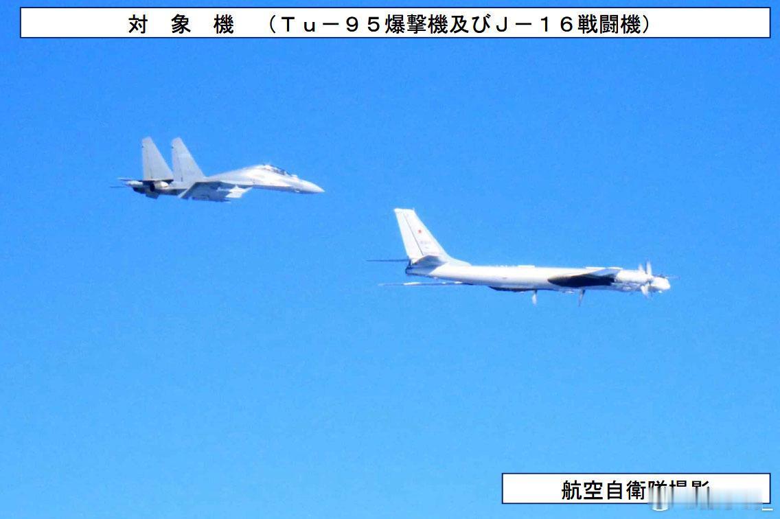 日本统幕监公布了中俄联合空中巡航的航迹图和图像。俄军2架图-95从日本海飞到东海后,与中方2架轰-6K会合,编队经宫古海峡飞到太平洋,再沿琉球群岛东南侧向东北方向飞行,最北飞到北纬31度线,非常接近日本本土。说白了就是进入了将东京纳入攻击范围的位置。出宫古海峡时以及返回时均有4架中方歼-16战斗机护航。从航迹图看,中方飞机并没有接近韩国,与韩国的公布有出入。