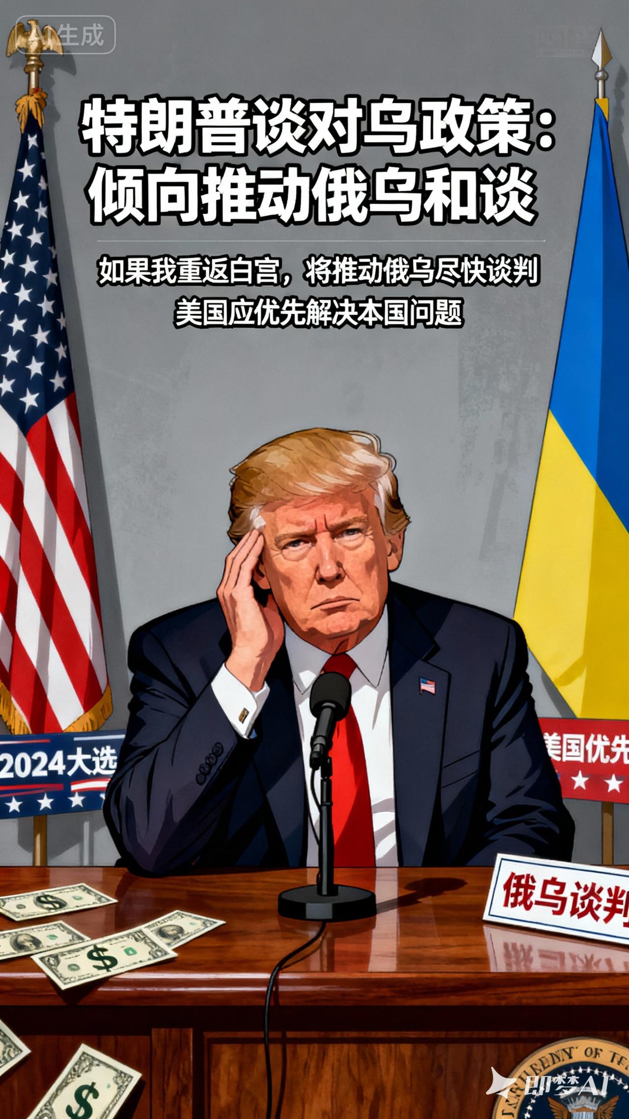 特朗普要放弃乌克兰吗 美国前总统特朗普在接受媒体采访时,再次谈及美方对乌克兰的政策,发出颇具争议的信号。 这位曾一手改写美国政坛规则的前,似乎并未打算延续现任,对乌克兰的大力支持。 特朗普公开表示,如果他重返白宫,将倾向于推动俄乌双方尽快坐到谈判桌前,而不是继续“无底洞”式地向基辅提供援助。 这番言论并非头一次出现,但这一次随着美国国内选战升温,“要不要给乌克兰送钱”成了选民关心的焦点之一。 特朗普的表态,无疑让外界重新评估美国如果易主后对乌克兰局势可能产生的冲击。 需要指出的是,自俄乌冲突爆发以来,美国 一直是乌克兰装备、资金和情报等多重支持的最大金主。 但近一年来,美国内部对此的分歧越来越明显,反对意见也从国会扩展到 lending民意。 特朗普强调,他不想让美国再次卷入遥远战争,更不用说继续大把撒钱。 他指责拜登团队对乌克兰的援助已经影响到美国自己的利益,甚至威胁到了边境安全与通胀状况。 在他看来,华盛顿应该优先解决本国问题,而不是在国外充当救世主。话虽然直接,倒也契合一部分美国民众的“美国优先”情绪。 特朗普承诺,如果自己再度获胜,将用更强硬和高效的方式,在短时间内逼停战争。这种自信式口吻,既是他的惯用伎俩,也是部分支持者愿意买账的原因。 然而,说到底,“放弃乌克兰”绝非一句口号那么简单。美国的国际地位、北约同盟关系,还有对抗俄罗斯的大战略,并不是谁一句话就能否定的。 哪怕特朗普真的减少对乌克兰的直接援助,摆脱当前的责任没有想象中容易。 军工利益、大西洋联盟,以及东欧安全的压力,都会成为摆在白宫桌前的烫手山芋。特朗普的“速战速决”方案,未必能避开这些现实阻碍。 面对如此棘手的难题,无论是降低支持力度,还是推动和谈,都像是在刀尖上跳舞。 而特朗普充满个人风格的表达和行事方式,或许会在外交层面带来新变化,却未必能彻底改变俄乌问题的基本走向。 目前来看,他是在用“不给无条件支票”为自己造势,至于真正面对现实,会不会选择全身而退,还得等时间给出答案。
