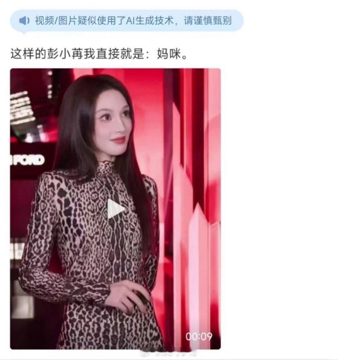彭小苒怼脸视频被添加AI提示 彭小苒太绝啦!活动现场豹纹长裙尽显妩媚性感,怼脸视频精致得不像真人,直接被加AI提示,这颜值谁能顶得住啊!