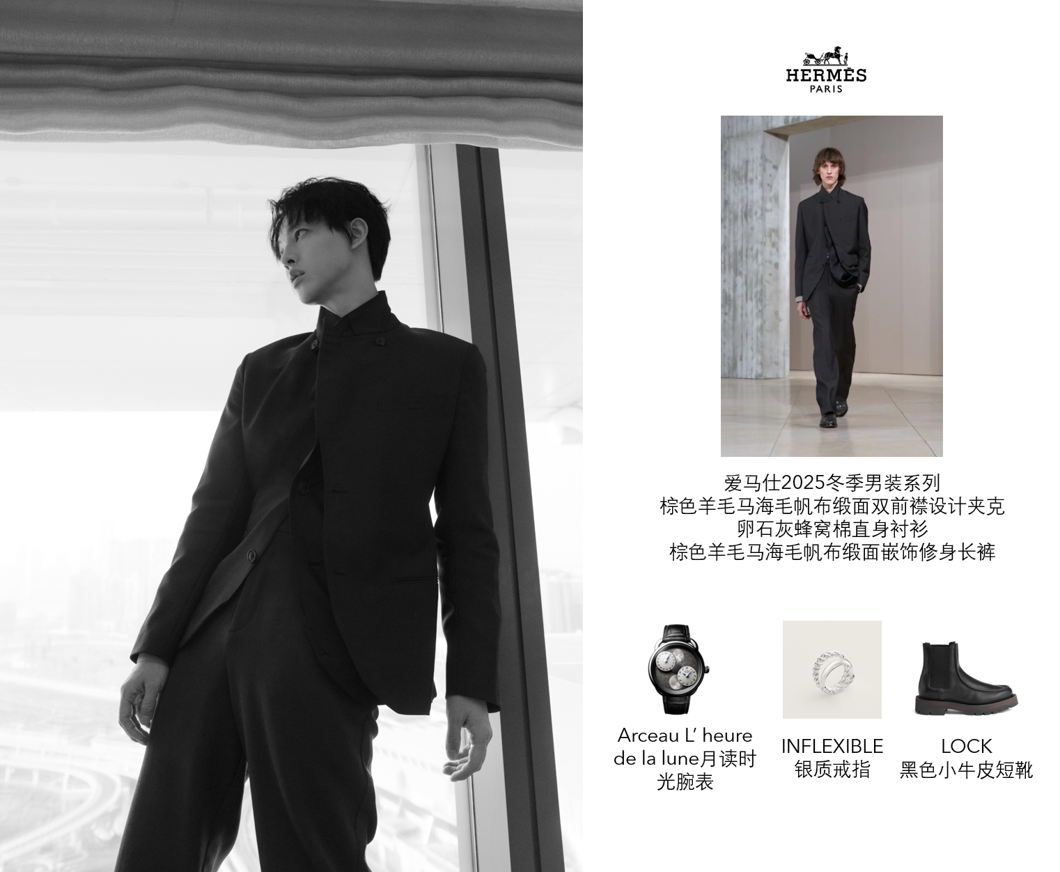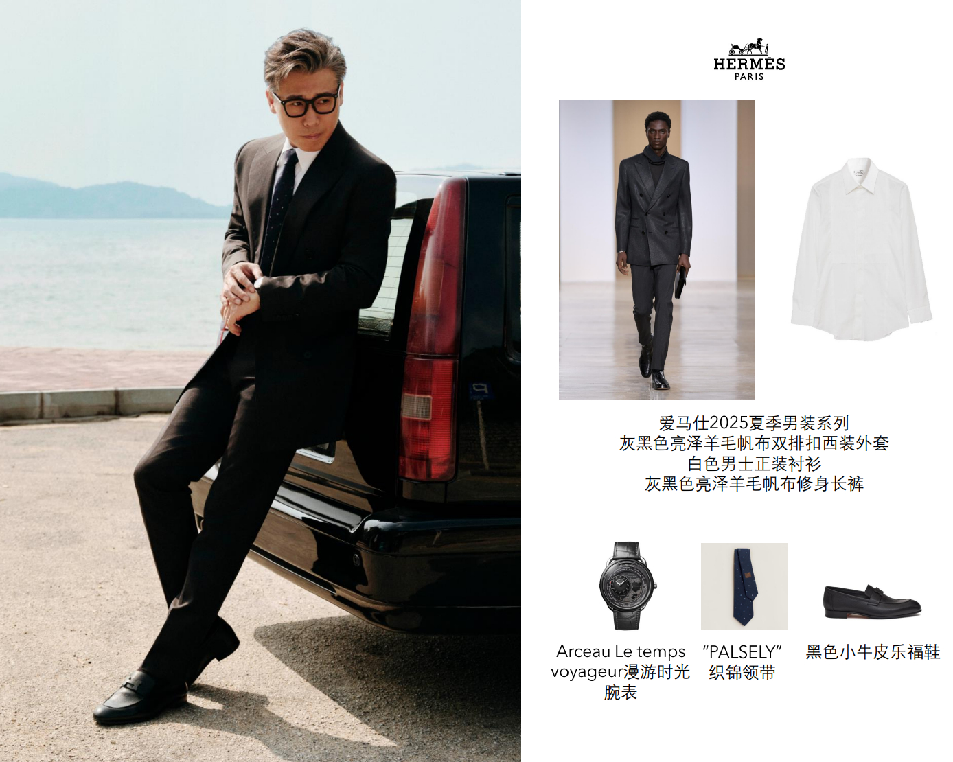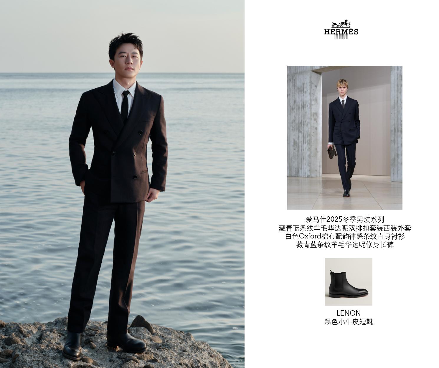 演员李乃文、黄轩、尹昉|活动造型分享李乃文身着爱马仕2025夏季男装系列灰黑色亮泽羊毛帆布双排扣西装外套。线条干净利落,搭配“漫游时光”腕表更显从容绅士气度;白衬衫与修身长裤则让整体更显轻盈有度。黄轩身着爱马仕2025冬季男装系列藏青蓝条纹羊毛华达呢双排扣套装西装外套、白色Oxford棉布配韵律感条纹直身衬衫、藏青蓝条纹羊毛华达呢修身长裤,搭配LENON黑色小牛皮短靴。利落剪裁衬托出他的内敛优雅。尹昉身着爱马仕2025冬季男装系列棕色羊毛马海毛帆布缎面双前襟设计夹克、卵石灰蜂窝棉直身衬衫、棕色羊毛马海毛帆布缎面嵌饰修身长裤,搭配Arceau L’ heure de la lune月读时光腕表。三种色调、三种气场,你pick谁的造型?时尚灵感解读时尚头排客