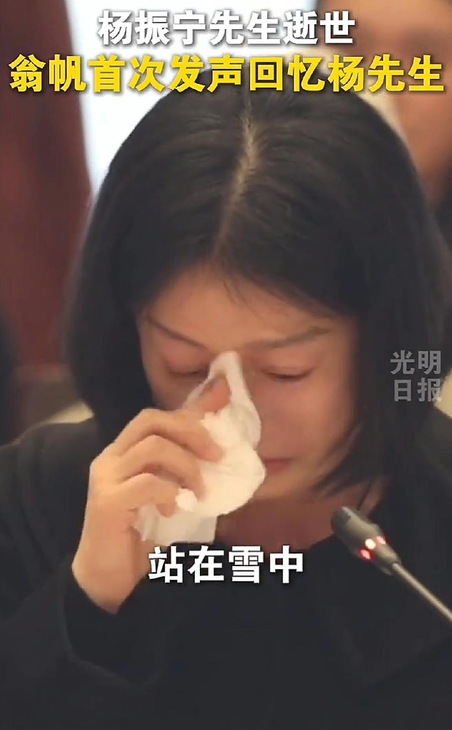 清华杨振宁追思会,翁帆发言时多次哭泣!回忆与杨振宁在清华生活的点滴往事,一起在雪中合照,一起在校园跑步,回忆袭来,情难自禁,低头啜泣!还有一个细节,二人共同生活几十年,翁帆至今仍称呼杨先生,而不是夫妻称呼的丈夫、老公,爱慕之情可见多深!这是翁帆首次发声回忆杨振宁,斯人已逝,思念之情却永远相伴!