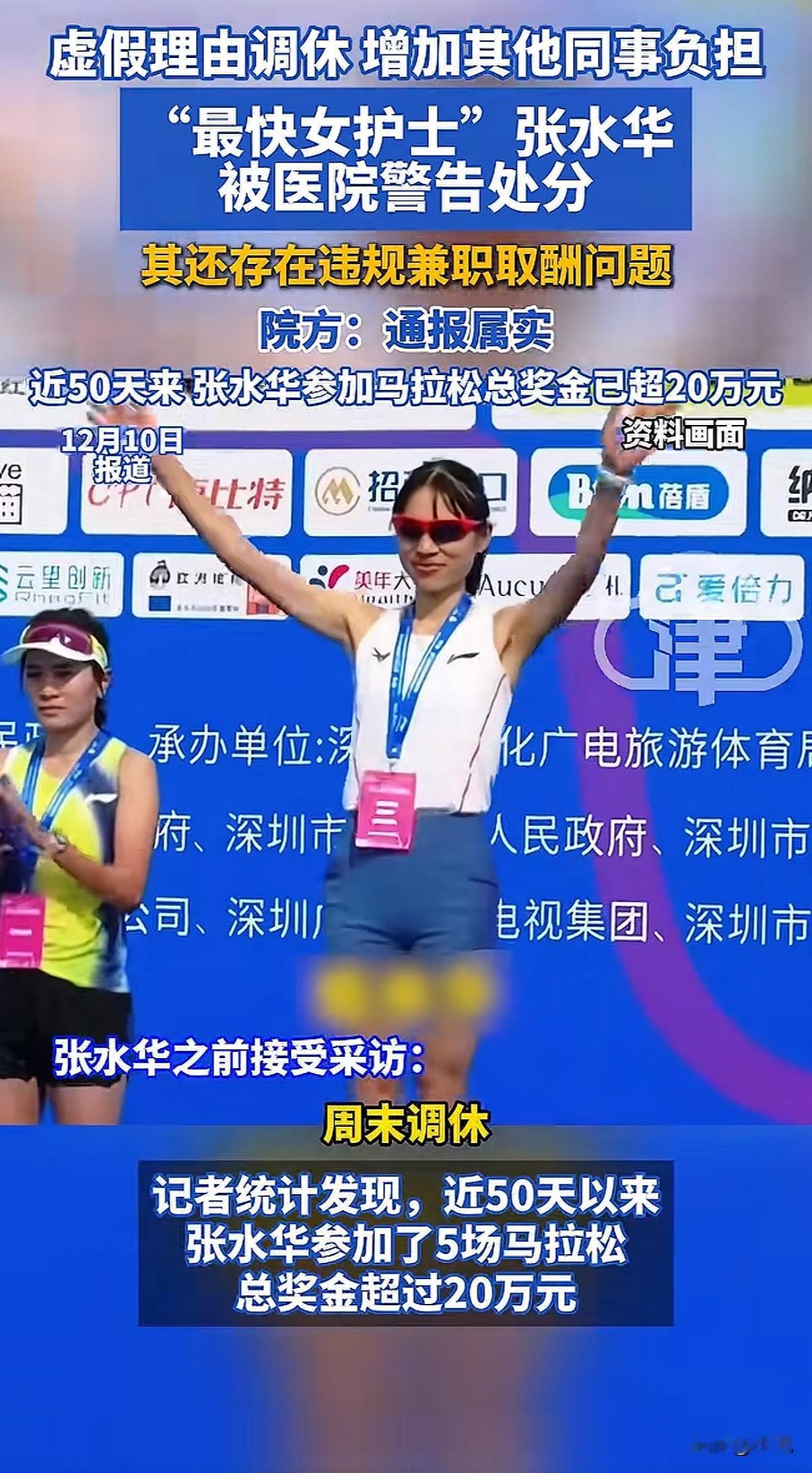 50天跑马拿走20万,奖金荣誉到手软,可班却是同事替她加的。这事搁谁身上,能没点想法? 网友也分成了两派。一边觉得,调休是正常权利,人家凭本事比赛拿奖,无可厚非。 但另一边,话就实在了:你风光比赛,同事埋头顶班;你奖金入袋,同事牺牲休息。一次两次是情分,次数多了,难免成了心里的一根刺。 说到底,问题的根子不在调休本身,而在于“怎么调”。用虚假理由去换假期,性质就变了。这不再是简单的爱好与工作的平衡,而是牵扯到职业诚信和同事间的公平。 医院给出的处分,两条都很明确:兼职取酬未报批,虚假理由骗调休。这触碰的是白纸黑字的规则。 欣赏她在赛道上风驰电掣的身影,是一回事;但认同她获取参赛时间的方式,是另一回事。 个人追求值得尊重,但职业的底线和同事的感受,同样无法绕开。