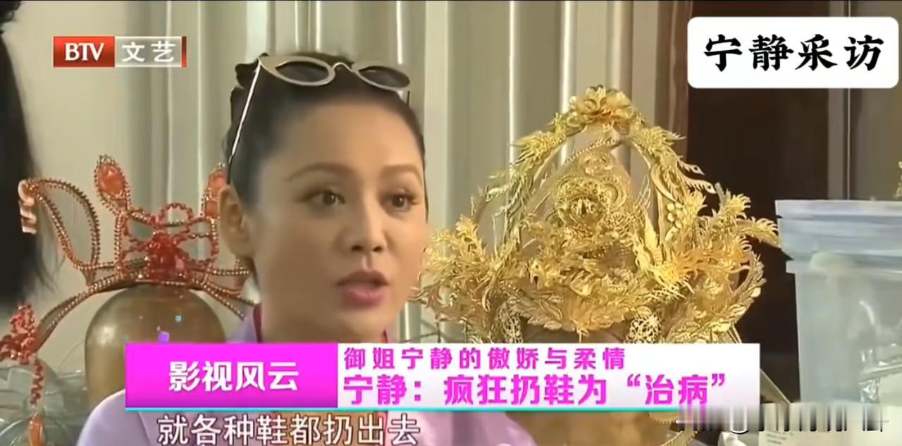 宁静说:“我是个鞋子狂,曾经在美国的一家店买鞋,也没买多少,就买了二十几双,那个店员说,买这么多,穿得下吗?我一下子觉得很惭愧,我确实有几百双鞋子,后来就送人的送人,扔的扔,有一次让人帮我扔了四十多双鞋,确实舍不得,可是不这样就治不好这个病,因为我是金牛座,还蛮计较钱的,这个毛病就治好了。” 宁静说自己是个购物狂,在义乌买东西时,店里不让买一个两个的,她可以一次买两千个小发夹来玩,家里也买了好多好多衣服,真到了想穿的时候,发现一件都不喜欢,所以她狠下心来要改这个毛病,那就是扔,当初都是用钱买回来的,现在全扔掉,看以后还会不会乱买。