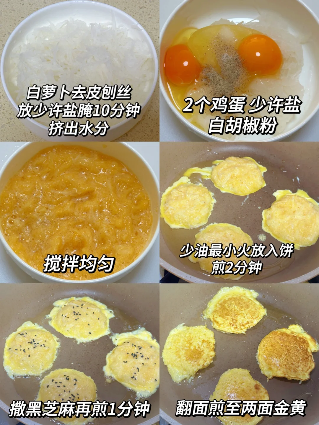白萝卜这样做的鸡蛋饼巨巨巨好吃!软软的,很清新。白萝卜含有丰富的维生素和矿物质,再搭配鸡蛋的蛋白质,营养丰富又健康美味,提高抵抗力。软糯的口感小孩也超爱吃,好吃又饱腹,建议减脂的女孩们把早餐或晚餐都换成这个!一大盘两人份也才200多大卡!一个饼才20大卡,[暗中观察R]减脂期的姐妹们可以放心炫~ [种草R]食材:鸡蛋、白萝卜(去皮)(2~3人份) [种草R]做法:如图所示~ [斜眼R]更多的减脂餐在往期笔记~
