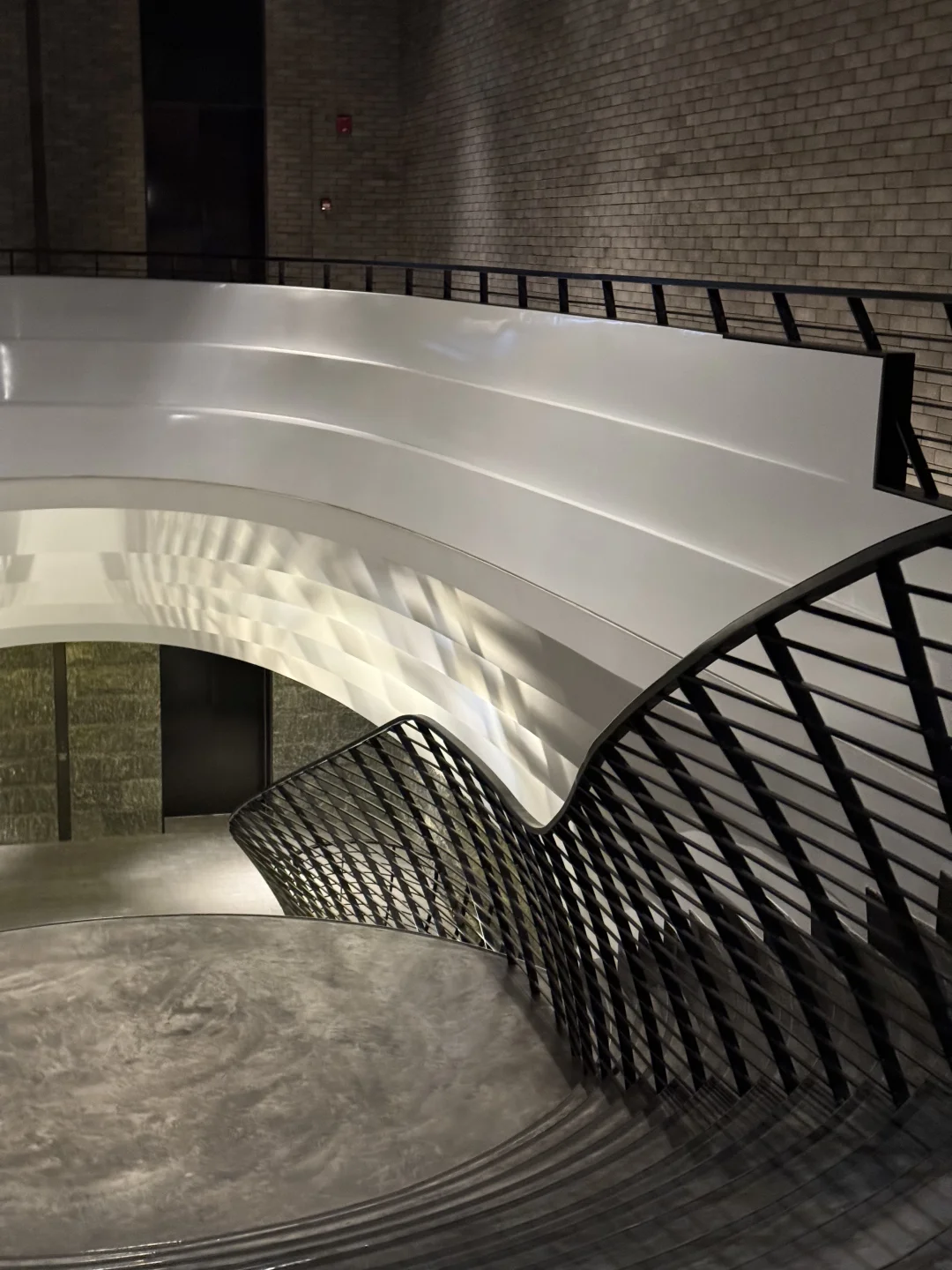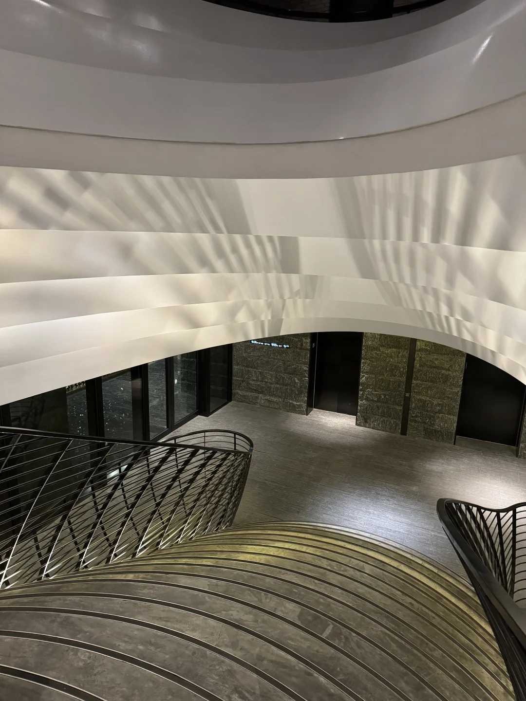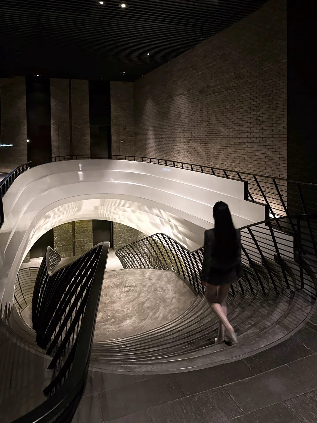 穿过大堂就会看到很有设计感的现代风格白色楼梯