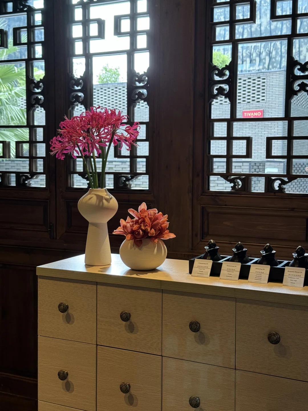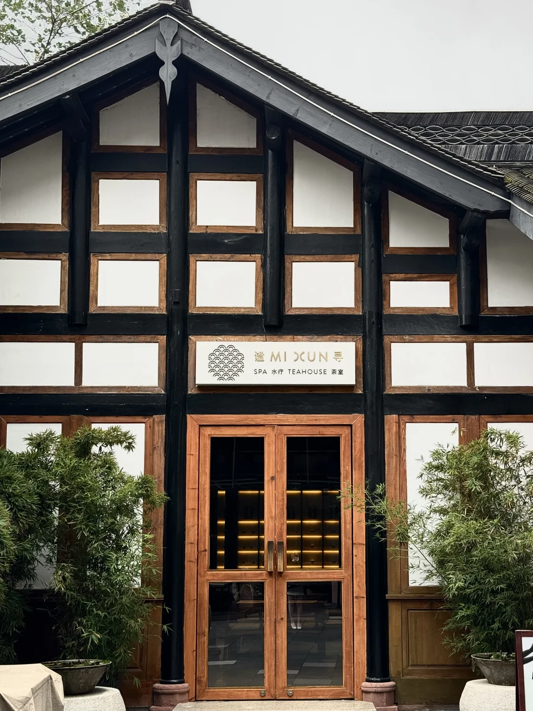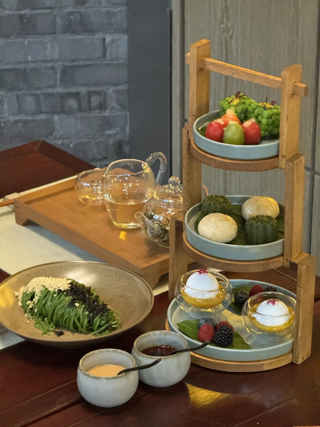 🍜从酒店侧门出去便是米其林一星餐厅谧寻茶室,环境幽静的中式喝茶好去处。下午有精致的下午茶,也可以单点,晚上是素食。菠菜担担面超级好吃