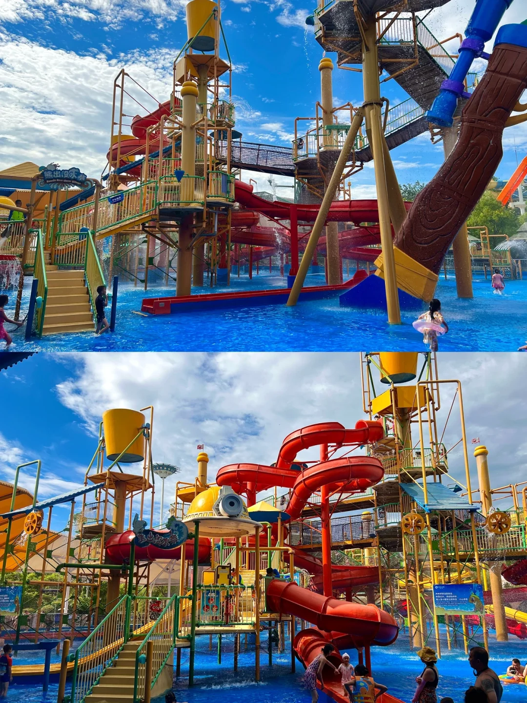 可以从白天玩到晚上,而且我玩下来之后,觉得他们的水还是蛮干净的,有很多小朋友玩得炒鸡开心