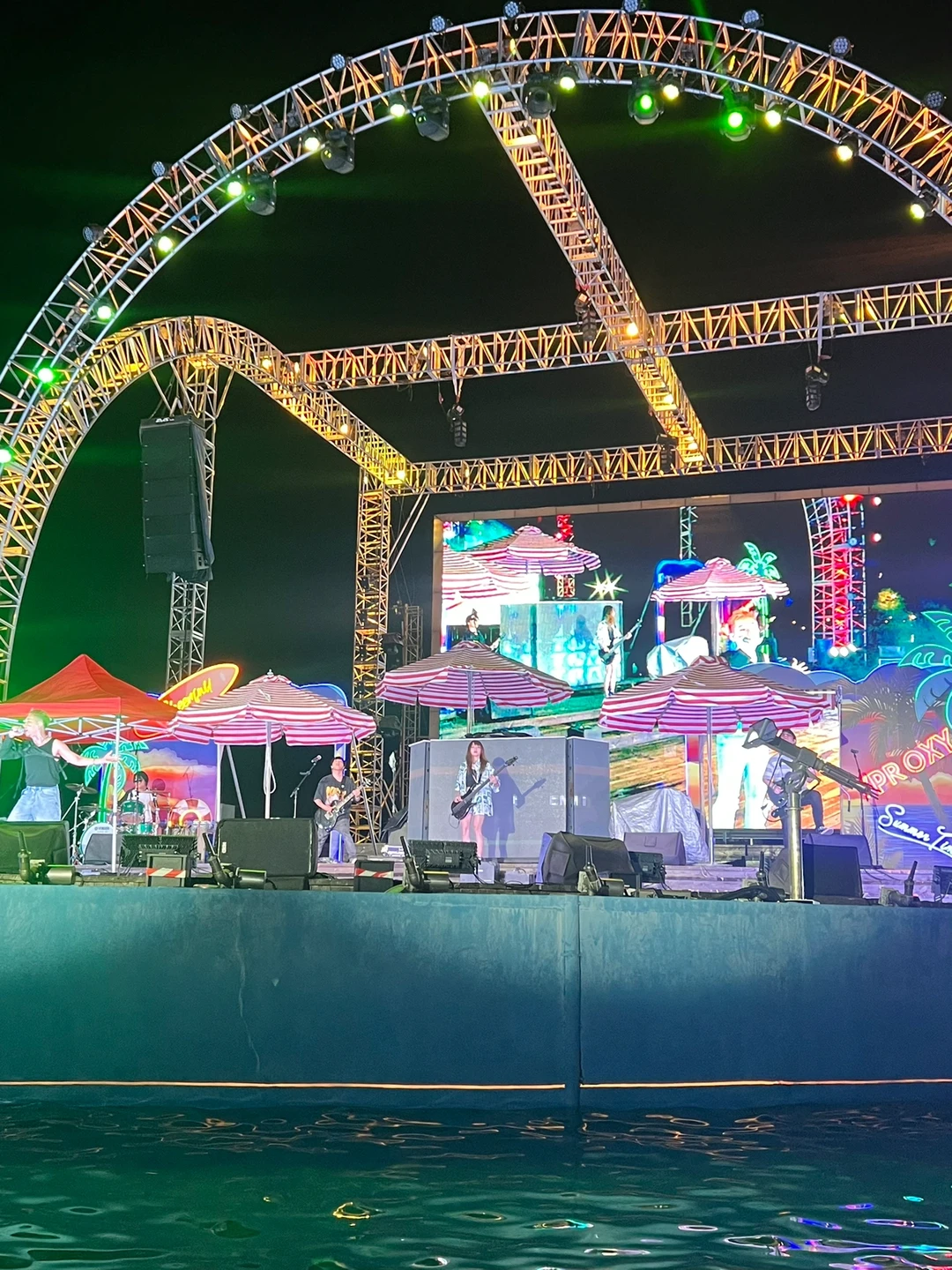 【夜晚舞台演出】有维密走秀、帅气男模、摇滚演出和DJ 打碟,在水里蹦迪还是头一次!