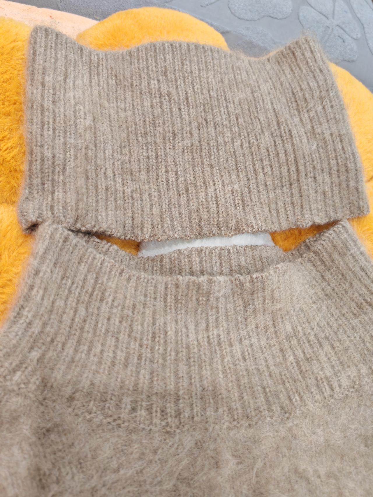 那天穿着这件超高领毛衣出门,热得浑身冒汗,下决心一定要改一改。 在抖音上搜到教程视频,昨天一大早就开始动手,拆下高领就花了一整个上午,一转眼就12点多了,有活干时间过得真快,放下手头的活急急忙忙做午饭,吃完饭又来研究怎么锁边。 给毛衣领和围脖锁边又干了整整一下午,成品还算过得去,对我这个手残党来说算不错了,尽管抖音视频里说两分钟搞定的事情 我花了一整天。以后毛衣改短、高领改低领的活,我觉得都难不到我。