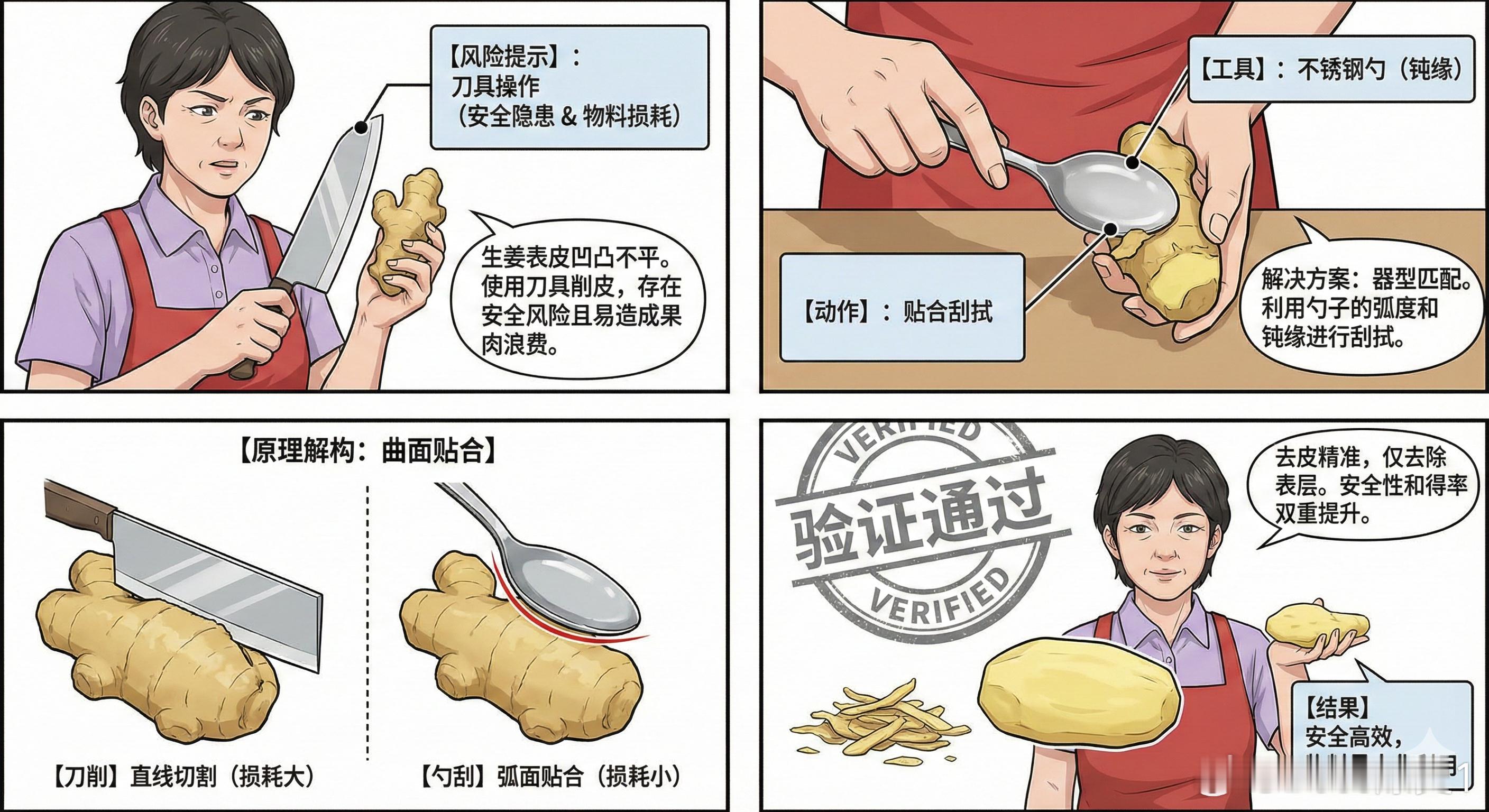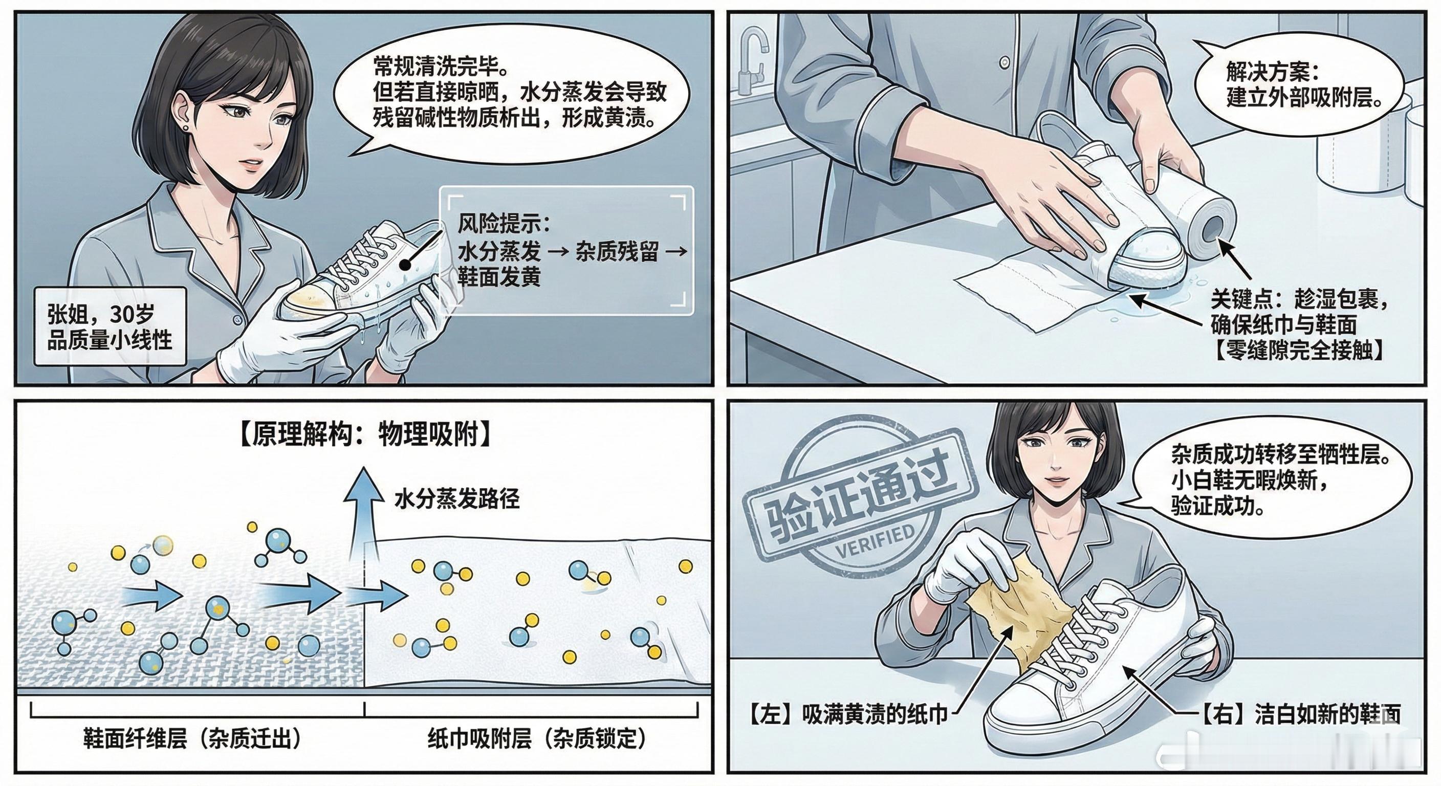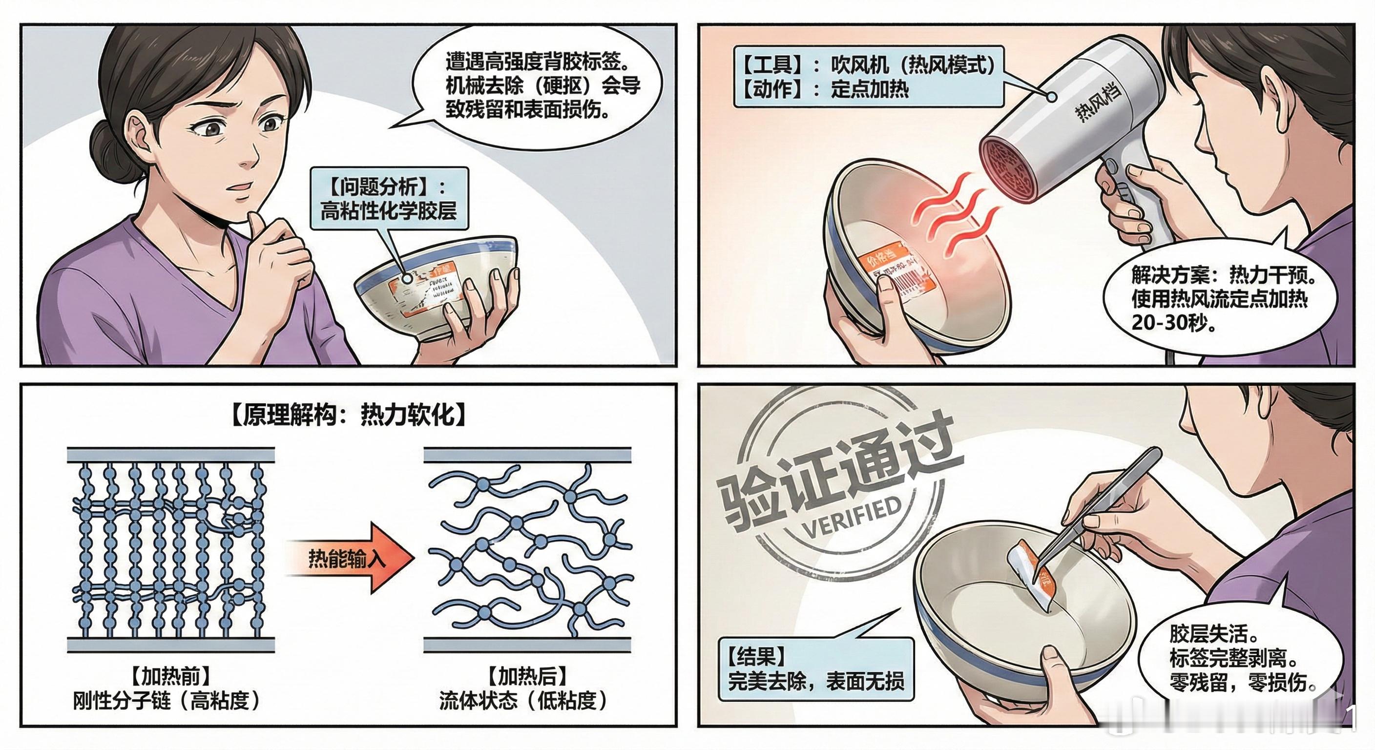 小白鞋发黄,碗上标签难撕怎么办?三个生活小妙招教给你1. 小白鞋“裹纸法”防止发黄这是拯救帆布鞋的经典妙招。痛点: 刷洗干净的白色帆布鞋,晒干后鞋面经常出现黄色的水渍。做法: 鞋子洗净后,在湿润的状态下,用卫生纸将整个鞋面严严实实地包裹起来(像贴木乃伊一样),不仅要贴满,还要让纸巾紧贴鞋面。原理: 纸巾具有吸附性,水中的杂质(导致发黄的碱性物质)会在蒸发过程中被吸附到纸巾上,纸干了会变黄,但鞋子揭下来洁白如新。2. 吹风机“热风”无痕去标签新买的碗盘、家具上的价签撕不下来,或者撕下来留有胶印?千万不要用指甲硬抠。做法: 拿吹风机开热风档,对着标签吹20-30秒。原理: 高温会让标签背后的粘胶软化,粘性降低。吹热后轻轻一撕,就能完整取下,不留一点残胶。3. 勺子去姜皮比用刀削皮更安全、更省料。做法: 不用刀切,直接拿一个不锈钢勺子,用勺子的边缘刮姜皮。优势: 姜的形状通常凹凸不平,用刀很容易切掉过多的果肉或者切到手。勺子的弧度可以完美贴合姜的表面,只刮下薄薄的一层皮,既安全又极大减少了浪费。