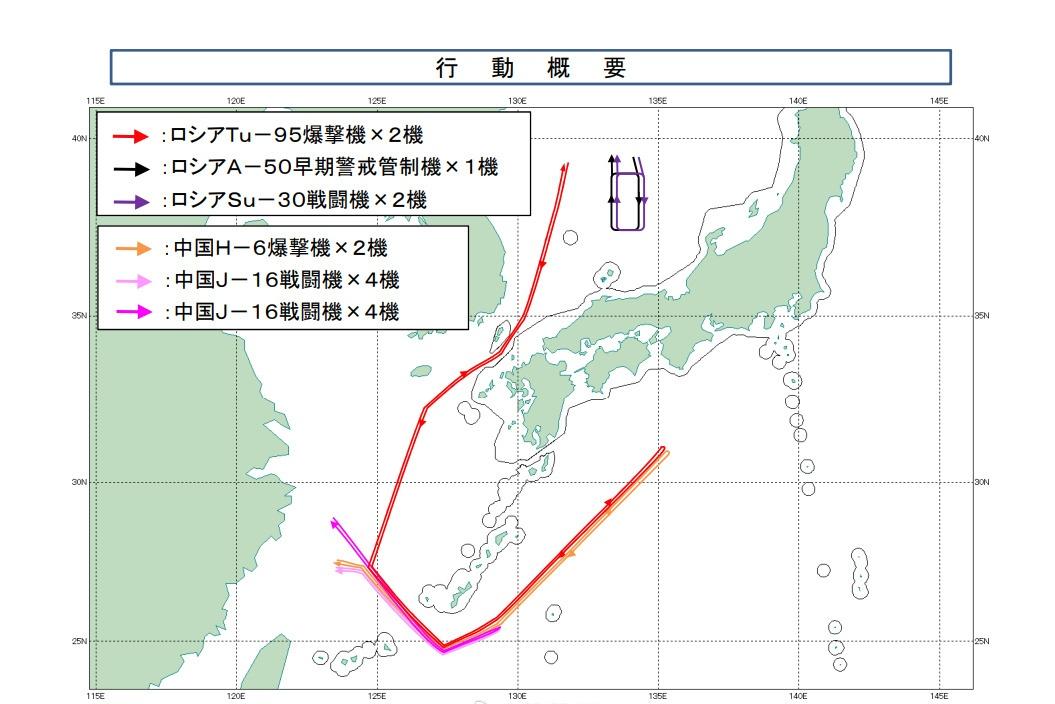 中俄轰炸机和航母从3个方向包围琉球日本防卫省称,12月9日下午,俄方轰炸机编队经对马海峡进入东海,与中方战机和轰炸机汇合后穿越宫古海峡进入西太,首次抵达四国以东空域,距离东京约700公里。同一天,日方继续监测辽宁舰动向,辽宁舰编队在北大东岛以东海域机动并向南绕行大东群岛,形成与联合空巡航线重叠。这意味着中俄远程轰炸机力量与辽宁舰编队形成海空立体机动态势,从多个方向靠近琉球区域。中俄军机在东海至四国附近太平洋联合飞行