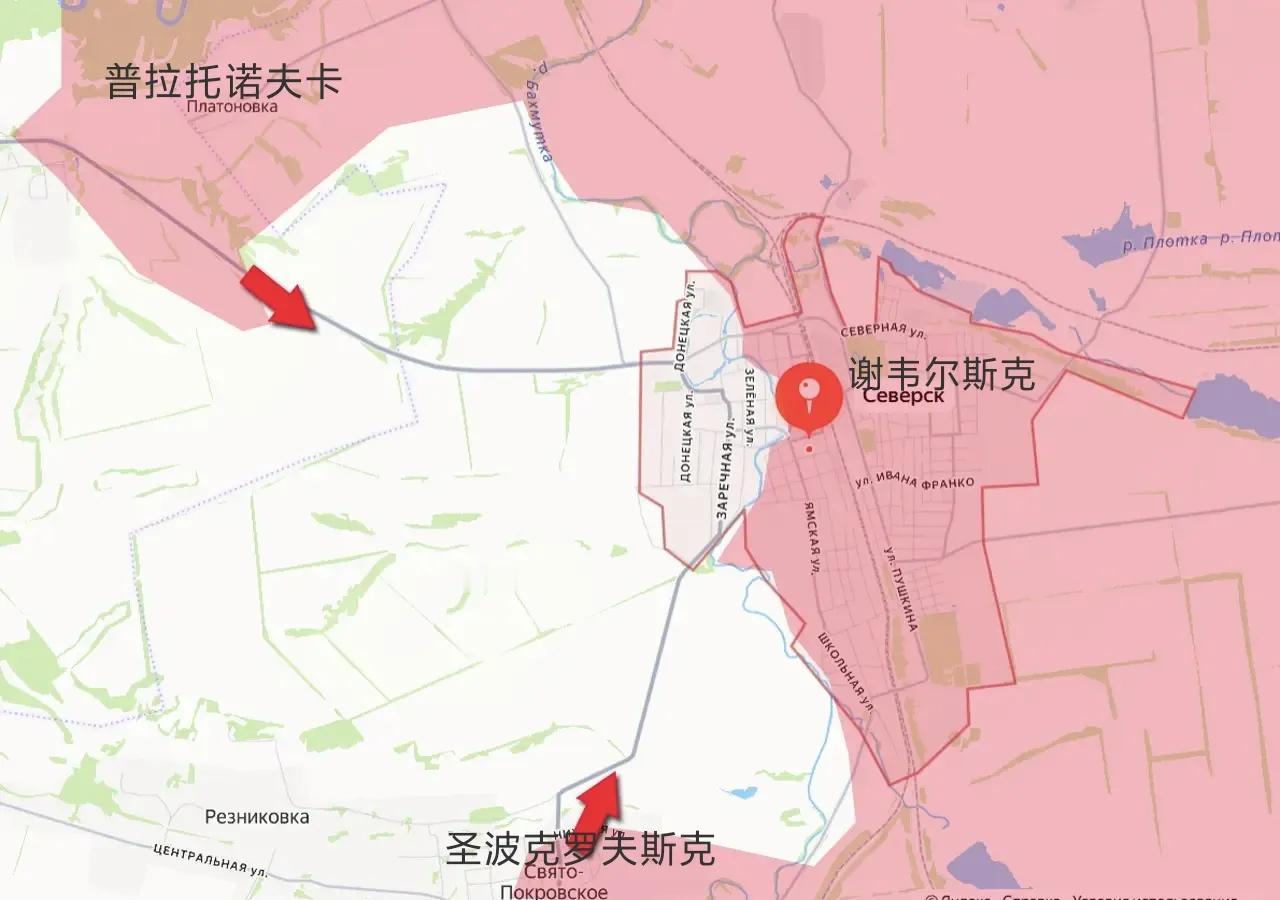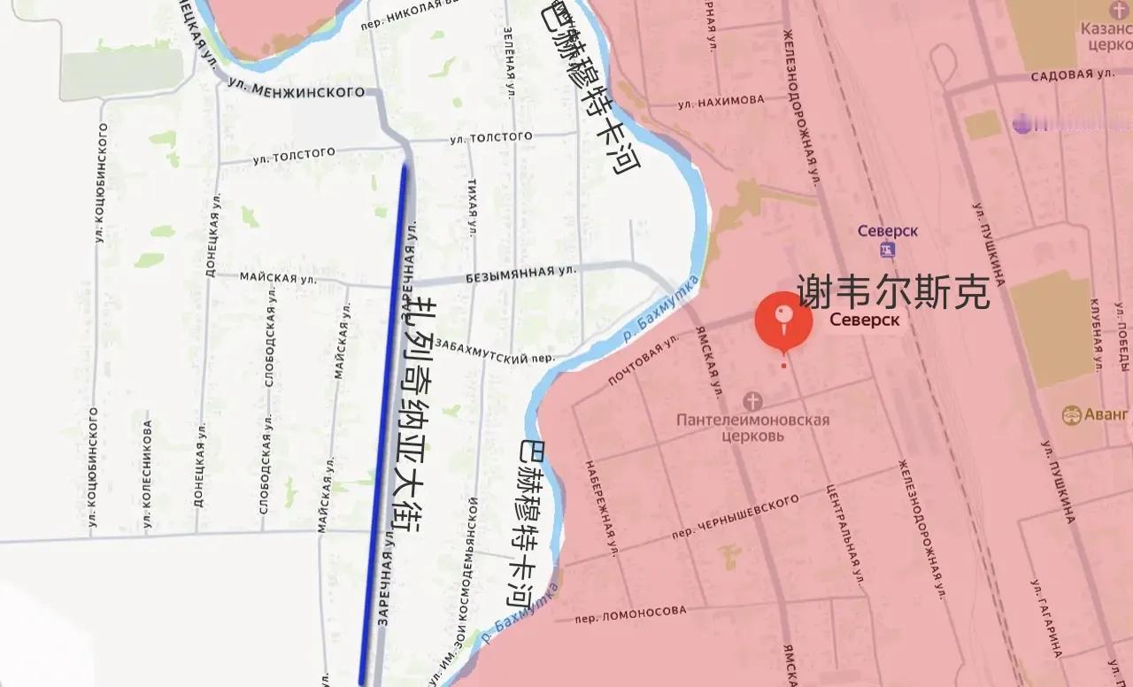 俄军已占领谢韦尔斯克大部分市区,也就是位于流经该市的巴赫穆特卡河以东的市区,乌军现在仅占据着巴赫穆特卡河以西的市区进行抵抗。 为了阻止俄军渡过巴赫穆特卡河,乌军紧急在巴赫穆特卡河西岸的扎列奇纳亚大街(谢韦尔斯克西部最长的街道,呈南北走向)构筑新的防线。然而,巴赫穆特卡河以西的市区缺乏高层建筑和大型企业,使乌军难以维持防御阵地。 目前,残余乌军唯一的希望是俄军别渡过巴赫穆特卡河进入谢韦尔斯克西部市区,但这纯属奢望。 事实上,俄军正从谢韦尔斯克西北面的普拉托诺夫卡向东包抄。而在谢韦尔斯克西南,俄军正从巴赫穆特卡河西岸的圣波克罗夫斯克向北攻击。因此,俄军突击队最终可能抵达扎列奇纳亚街附近的乌军部队后方。届时,在谢韦尔斯克的乌军残余守军将会被四面合围,如同季米特洛夫的情况一样。 当然,俄军也可能直接渡过巴赫穆特卡河,攻击剩余的谢韦尔斯克市区,因为在谢韦尔斯克市区北部,俄军一些突击队已经渡过巴赫穆特卡河,到达西岸。