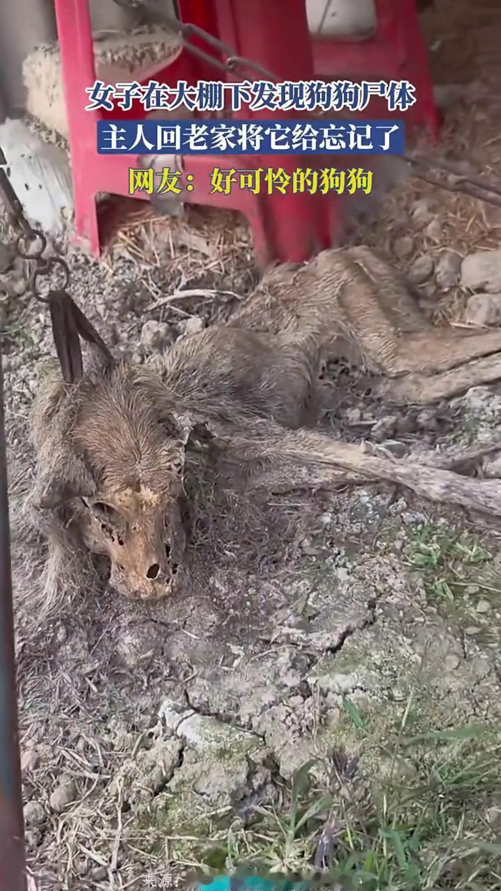 女子在大棚下发现狗狗尸体,主人回老家将它给忘记了。网友:好可怜的狗狗。 来源:都市六七秒侵刑请联系。