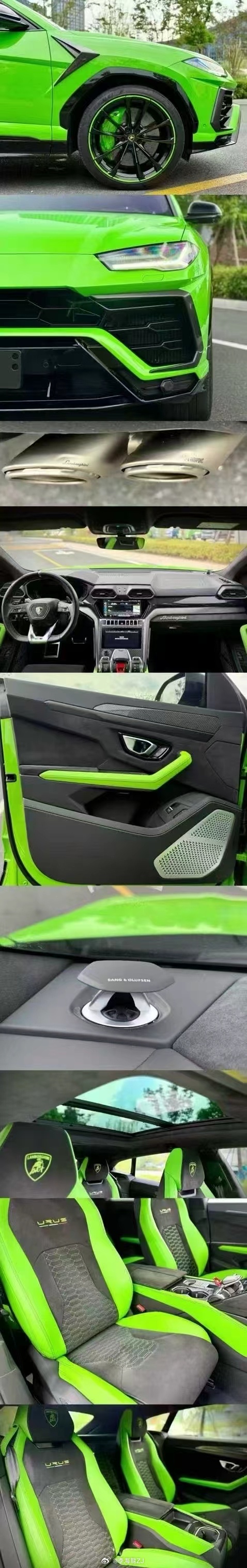 21年👆兰博基尼Urus 四座绿色外观/黑绿双拼内饰 配置:抬头显示,23寸轮毂,BO音响,座椅通风加热按摩,全景天窗,多种驾驶模式,ACC自适应巡航,360环影,升级天蝎排气等🈵配仅行驶:39000Km