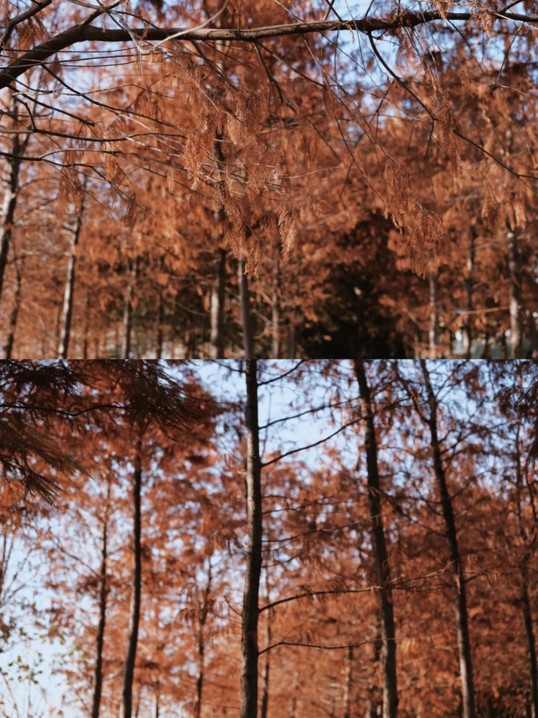 乌龙江边一片的的落羽杉,笔挺的枝干,一到秋冬季节叶子🍃转为暗红色,特别唯美。