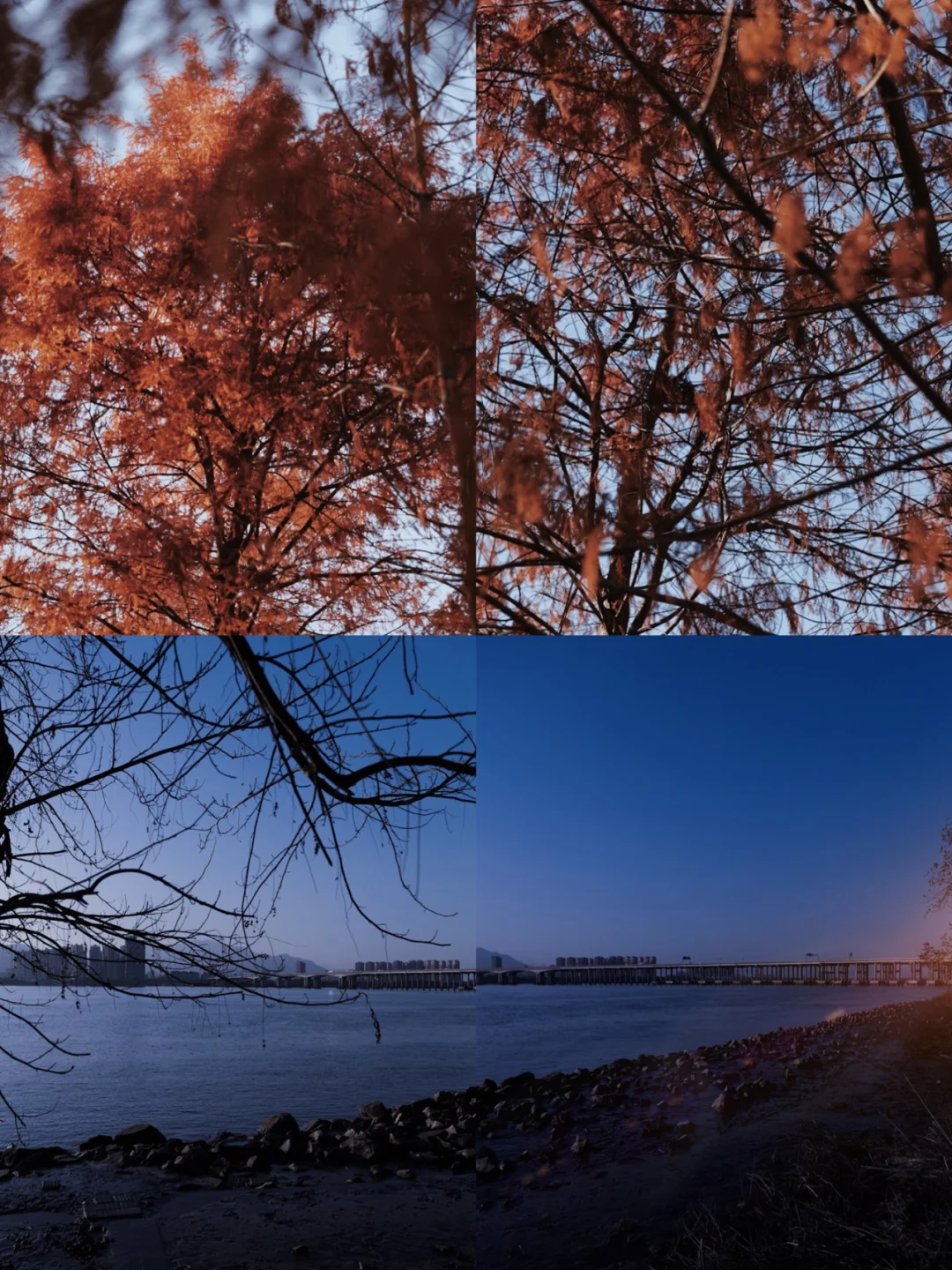 🍁 最近天气都很好,下午到傍晚之间江边都很美。蓝色滤镜很衬画面(图5)