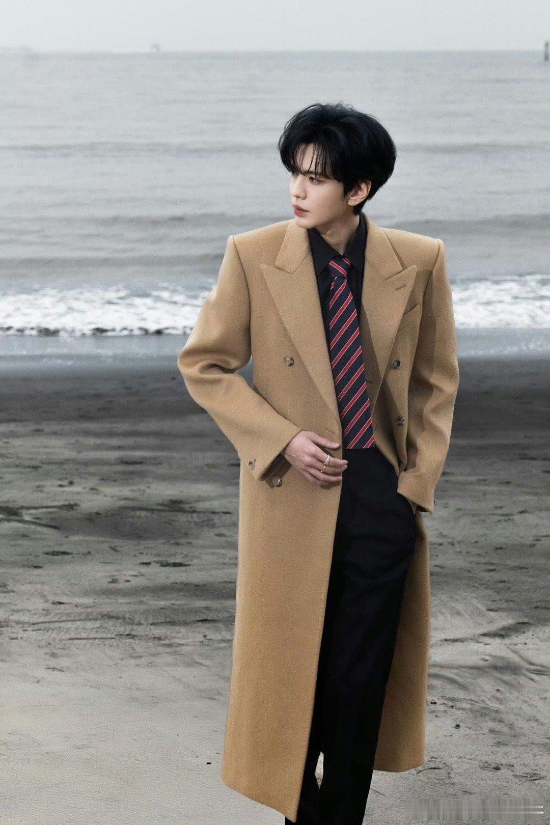 毕雯珺帅得我有心事了 浅棕大衣在海边扬起的弧度都透着时髦,黑衬衫条纹领带衬得利落,模特身材把造型撑得超有范儿,帅到让人有心事藏不住~
