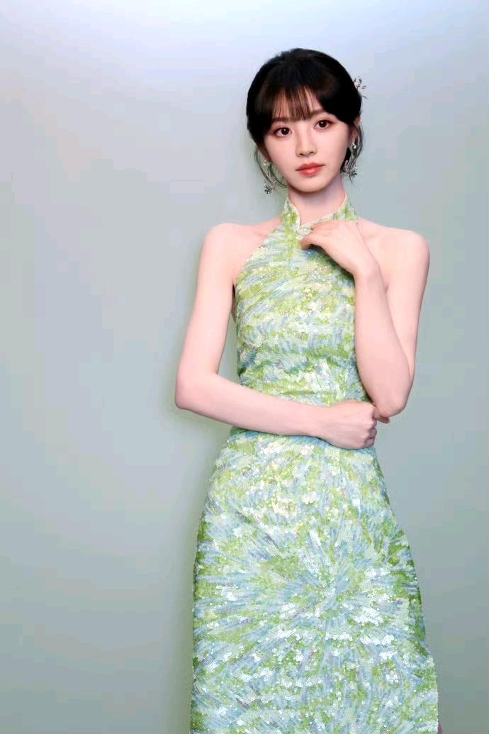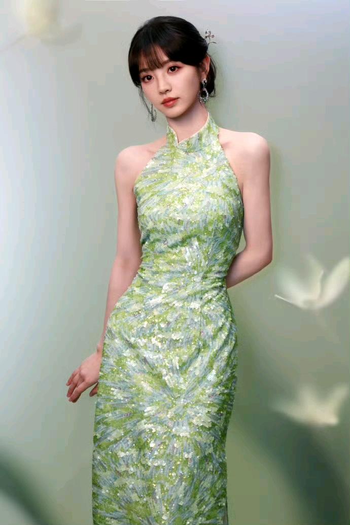 田曦薇绿色新中式旗袍还挺适合她 她也算是95花里面,能让人比较有记忆点的女星了,这套绿色的新中式旗袍也很能衬托她的甜美。 田曦薇