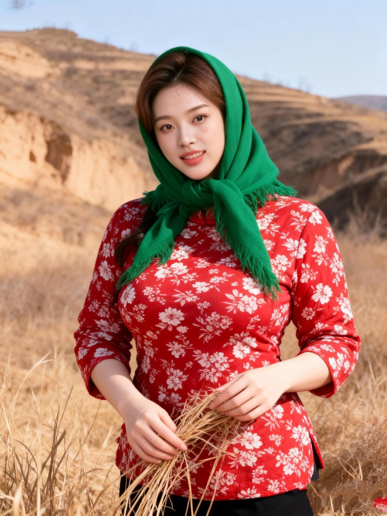 《塬上红妆》 黄土塬头风漫扬, 红衫翠帕衬新妆。 纤手轻拈秋草穗, 乡音未改是晴光。 赏析:这首小诗以黄土塬的地域风貌为背景,先勾勒出黄土坡头的自然环境,再用“红衫翠帕”捕捉画面中鲜明的色彩对比,凸显人物装扮的乡土美感;后两句聚焦人物拈草穗的动作,将质朴的乡野气息与“晴光”相融,以简洁的笔墨勾勒出陕北乡土里鲜活明媚的人物形象,让画面的地域特色与人物的灵动气质相得益彰。黄土风光 秋日黄土坡 黄土塬 高塬上的风景 塬下风景 黄土高原秋韵
