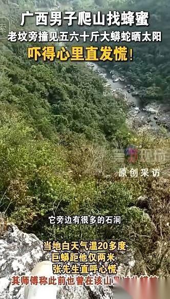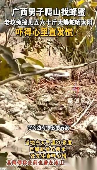 两米。 真的就两米。一条快有我大腿粗的大蟒蛇,就盘在我歇脚的石头旁边晒太阳。 我当时屁股底下坐的石头还是热乎的,可后背的冷汗,“唰”一下就冒出来了。心跳直接干到了嗓子眼。 脑子一片空白,就一个念头:完了。 你知道最恐怖的是什么吗? 不是它有多大,而是它看你的那个眼神。特别平静,懒洋洋的,就像在打量一个……闯进它客厅的陌生家具。 它根本没把我当回事。 那一刻我才真的懂了,山里有山里的规矩。你跑,你就是猎物。你不动,你就是个路过的风景。 我几乎是把呼吸都停了,一步一步往后挪。鞋底踩在枯叶上那点声音,当时听着跟打雷一样。 后来安全撤下来,我一点都不觉得自己是“死里逃生”。 说白了,人家压根就没想搭理我。晒它的太阳,过它的日子,是我打扰了。 真正让我后怕的,是下山时碰到那两个拿着自拍杆,说要搞“野外探险”直播的后生仔。 我把这事儿一说,俩小伙子脸都白了,乖乖掉头。 他们把山当成了网红打卡地,觉得什么都可以拿来表演。 却不知道,山有山的脾气,自然有自然的法则。它不会因为你要流量,就收起它的爪牙。 人家才是主人,我们顶多算个客人。 客就要有客的样子。 别总想着从主人家顺走点什么,不管是蜂蜜还是几张照片。 能平平安安地来,再平平安安地走,比啥都强。 毕竟,命,比蜜甜。