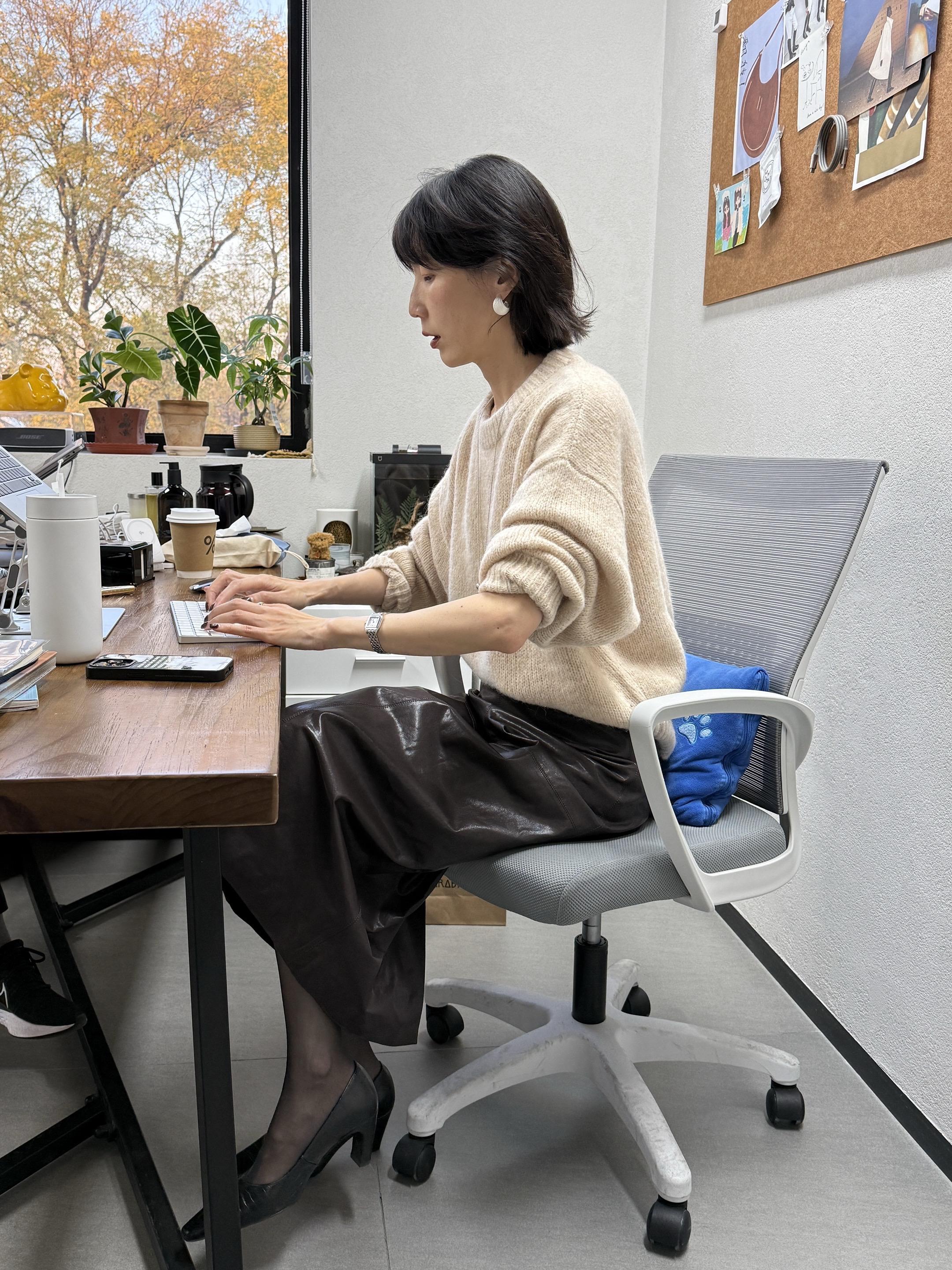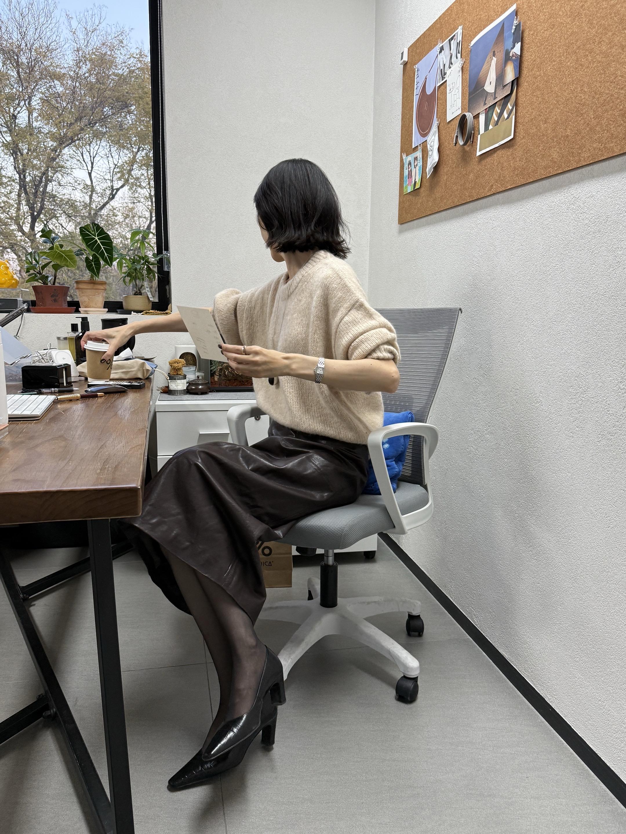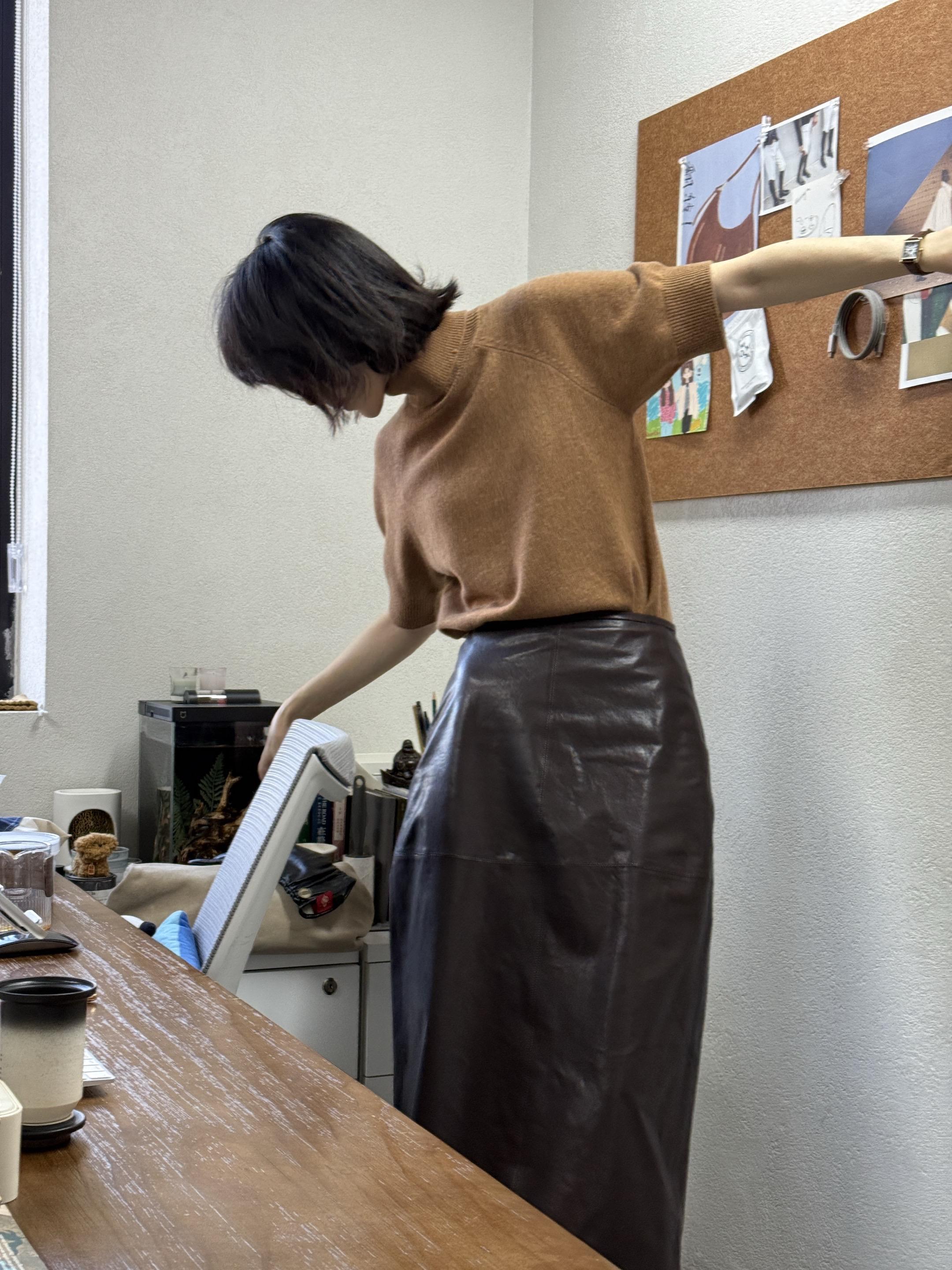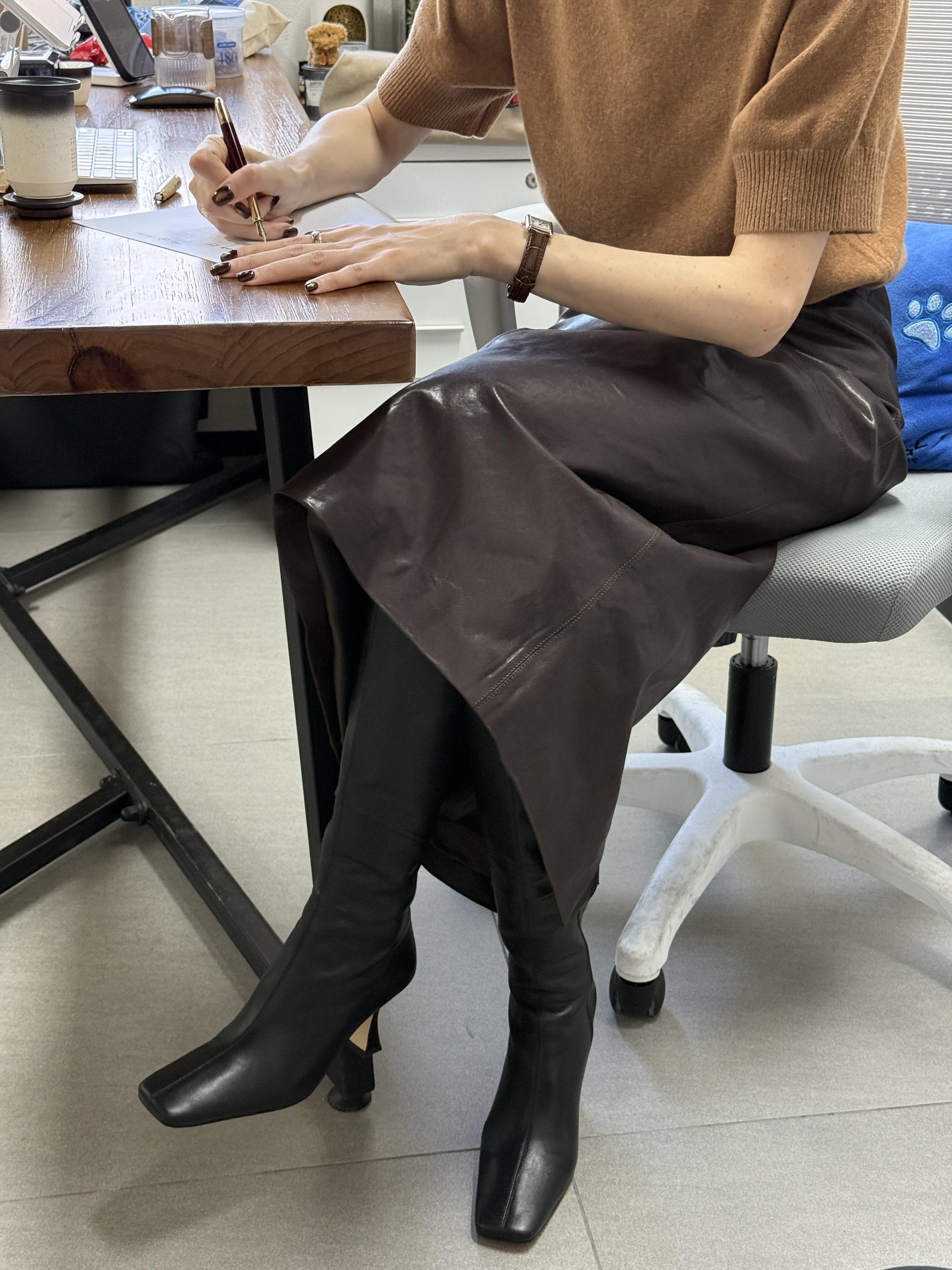 皮裙2个通勤Look 配高跟或者长靴都不错。