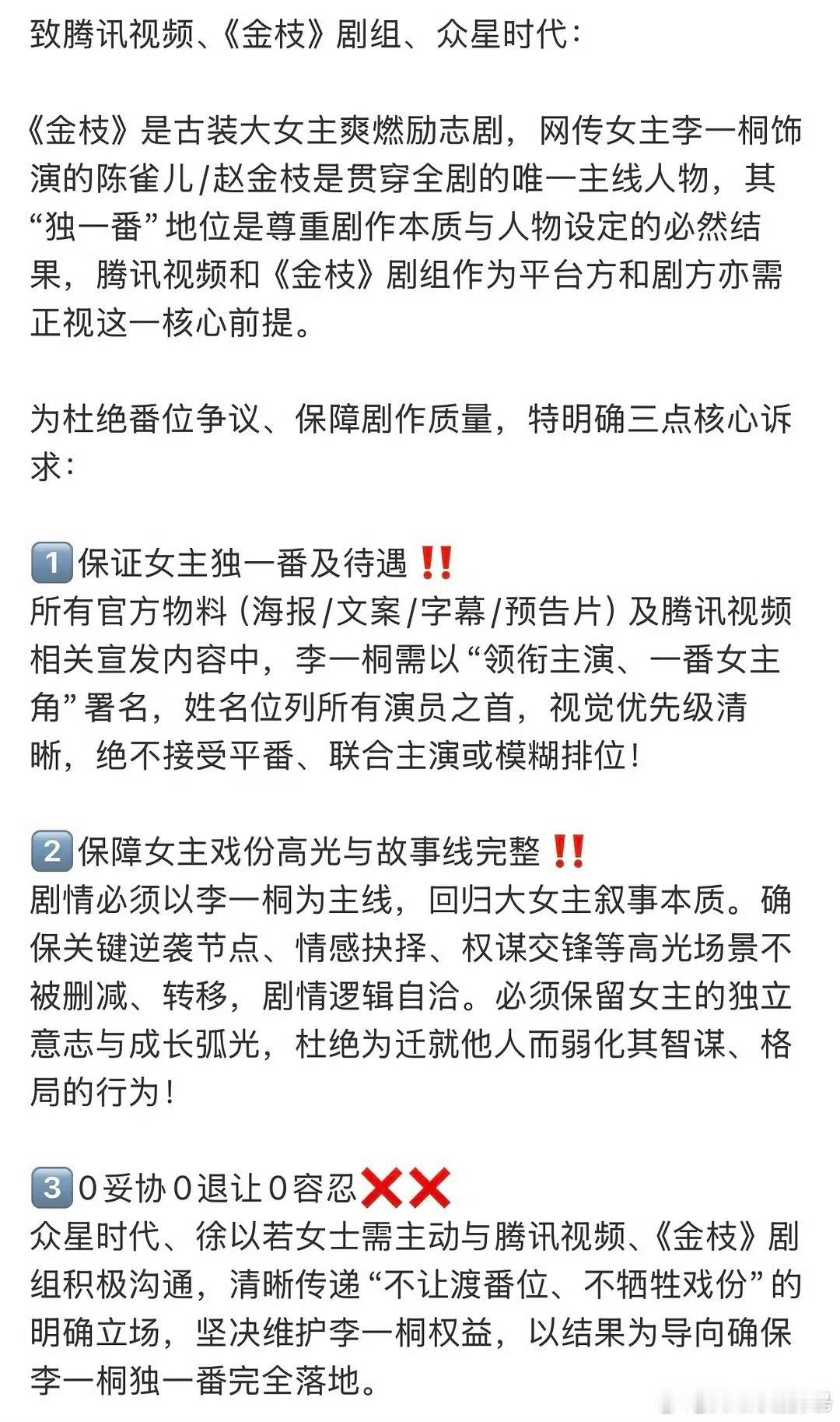 李一桐粉丝要求《金枝》独一番➕保证高光故事完整