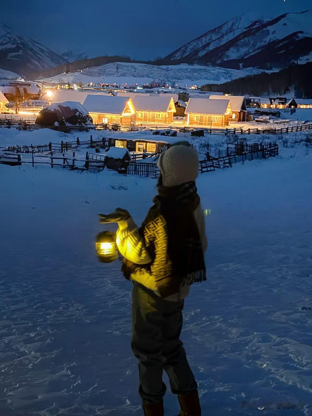 禾木落日蓝调时刻 原来童话世界真的存在! 这趟禾木之旅攒满了好运气,邂逅了此生难忘的落日蓝调时刻。夕阳缓缓坠入山谷,余晖将雪顶木屋晕染出温柔的金边,暖黄的灯火次第亮起,在皑皑白雪里织就出治愈的光晕。 天色渐暗,蓝调时刻悄然降临。天地间被一层静谧的藏蓝笼罩,雪地泛着清冷又梦幻的光泽,冷空气裹着松木的气息扑面而来。尖顶小屋错落有致,像从童话书里走出来的模样,美得让人失语。 领队的镜头及时定格下这一切,让这份不真实的浪漫,成为了永久珍藏的冬日限定记忆。