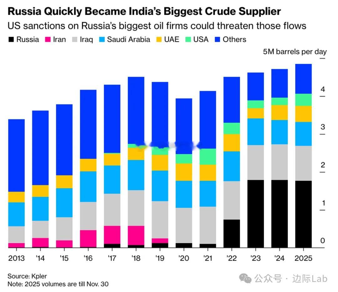 俄罗斯过去三年利用深度价格折扣策略迅速取代伊拉克和沙特阿拉伯,重塑了印度的能源进