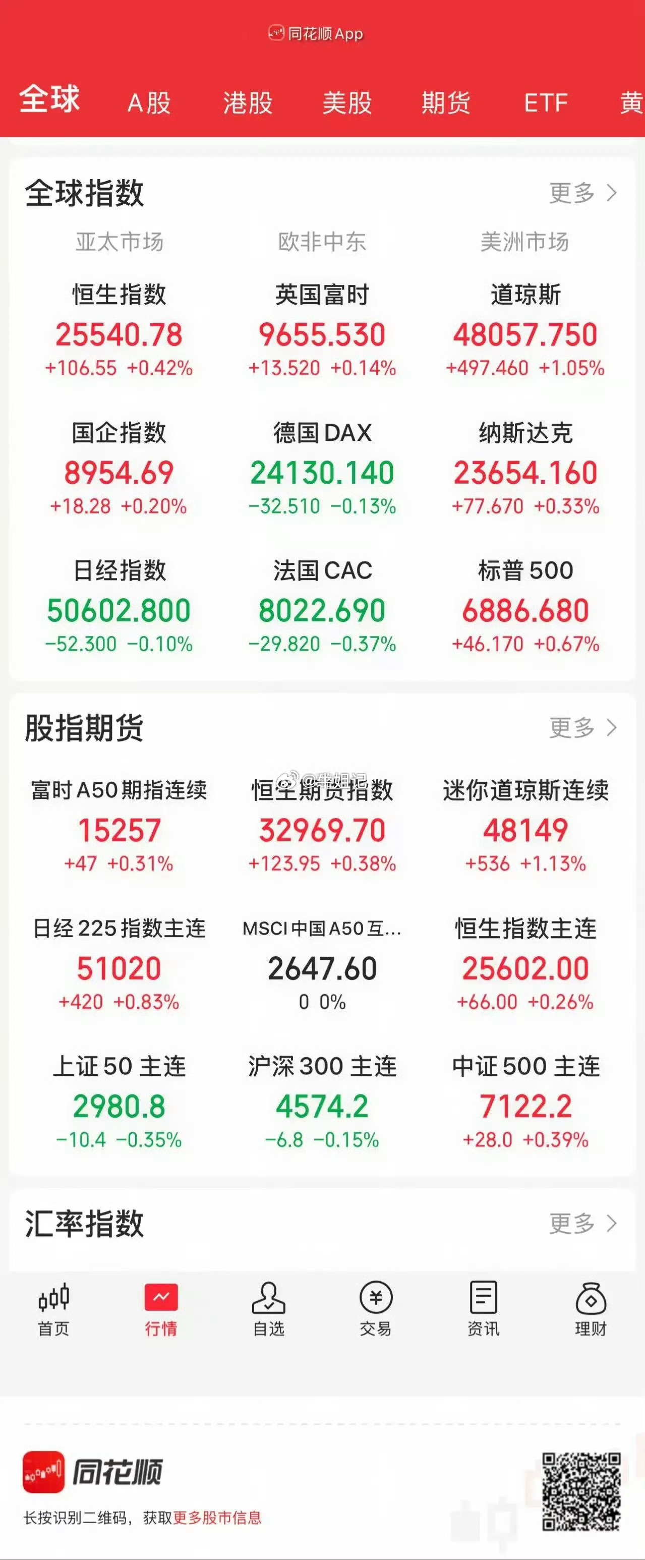 12.11股市早知道:1、外盘汇总:小涨,如图一。 2、交易提示:无。 3、财经日历:无。 4、三大指数:1)大盘:继续看涨2)创指:继续看涨3)科创50:继续看涨 5、重要新闻:1)农业农村部部署2026年元旦春节促消费工作;2)国家药监局批复同意吉林、海南省药监局开展优化药品补充申请审评审批程序改革试点。 6、市场动态:1)广东国资成立商业航天产业发展公司;2)海光信息:与中科曙光保持良好的产业协同与合作;3)深圳海事16项创新举措服务港航高质量发展;4)辽宁:到2030年,跨境电商市场主体数量年均增幅达15%以上。 7、公司公告:1)东百集团:控股股东丰琪投资12月9日减持2.98%股份;2)英思特:股东拟合计减持不超2.22%公司股份;3)蓝思科技:拟收购液冷和服务器机柜公司裴美高国际100%股权;4)美年健康:股东杭州灏月及其一致行动人杭州信投拟合计减持不超3%股份;5)华谊兄弟:债务逾期5250万元,拟逐步退出和处置部分资产;6)宁德时代:拟注册发行不超过100亿元债券;7)贵州茅台:中期分红300亿元,股权登记日为12月18日。(关注点赞+评论,陪你一起到牛市)财经今日看盘