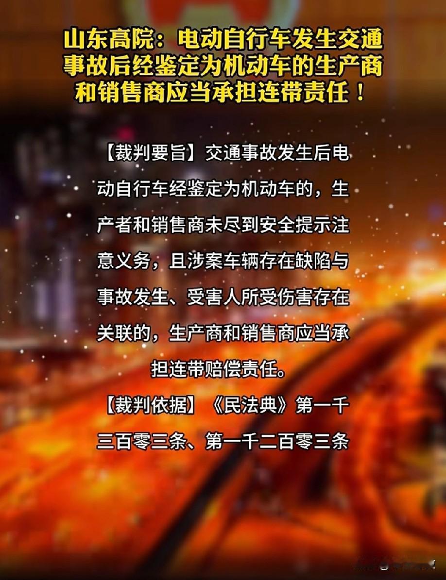 一场人为的悲剧,瞬间夺去了一个孩子的生命,更毁了一个幸福的家庭,这就诠释了电动自行车的速度,控制在25公里内的必要性。 如果这辆电动车的速度只有25公里,驾驶员便没有底气敢在这样的车流中对向穿插,他敢这样开,就是对于车速过于自信,最终酿成了大祸。 好在这事不是发生在山东,否则电动车生产厂家和销售公司看到后一定会瑟瑟发抖,吓得睡不着觉。 更令人后怕的是,敢超大货车这样的速度,驾驶员跟乘客竟然都没有戴头盔,虽然这次他俩没有什么大的伤害,但不能保证下次还这么幸运。 虽然我很少骑电动车,但只要骑电动车必须要戴头盔,戴头盔不是怕交警查,而是为了保护自己的脑袋。 但现在说什么都晚了,悲剧已经发生 ,希望这夫妻俩能记住这次深刻的教训,也希望交警不要让汽车驾驶员承担责任,因为这样的结果本来就是电动车驾驶员自己造成的,自己酿的苦酒自己喝。 热点