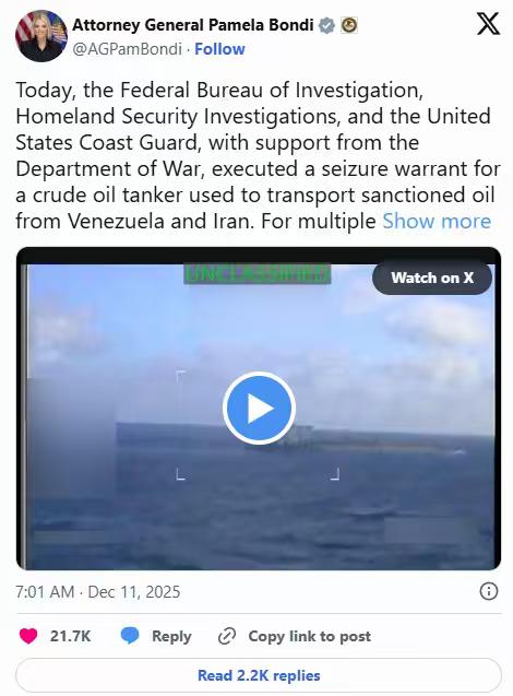 [NOWnews今日新闻]美国总统特朗普当地时间周三证实,已在委内瑞拉附近扣押了一艘大型油轮,有分析认为,美国此举可能预示对委内瑞拉的行动进入新阶段,持续向委内瑞拉总统马杜洛(Nicolas Maduro)施加更多压力、迫使对方下台;也有反对声音指控,美国高举打击毒品犯罪的名义,实则对委内瑞拉实施掠夺。 综合《CNN》、《BBC》等外媒报导,特朗普10日在白宫表示,这可能是美国迄今为止,扣押过的最大油轮,实施扣押的理由「非常充分」,但拒绝透露油轮的主人是谁,当被问及油轮上运载的石油将如何处理时,特朗普回答:「我想我们会留着」,还说自己从上个月与马杜洛通话后,就没有再与对方交谈过。 知情人士透露,这艘油轮正准备开往古巴,该国近期遭遇数十年来最严重的电力短缺危机,其老化的能源基础设施依赖石油进口,而这些石油通常来自委内瑞拉、俄罗斯和墨西哥等盟友的捐赠。 美对委内瑞拉的施压行动已持续数月,包括向加勒比海增派军力及部署航空母舰打击群,轰炸疑似贩毒的船只,迄今已造成至少87人死亡、23艘船被摧毁,川普并多次暗示可能很快就会采取陆地行动。 美国司法部长邦迪(Pam Bondi)随后在推特网站上发布了一段视频,显示武装人员登上油轮,还强调是联邦调查局、国土安全调查局和美国海岸警卫队在战争部的支持下,执行扣押令,打下:「多年来,这艘油轮因参与支持外国恐怖组织的非法石油运输网络而受到美国的制裁。此次在委内瑞拉海岸附近进行的扣押行动安全可靠,我们与国土安全部合作,继续调查并阻止受制裁石油的运输。」 有分析认为,虽然美国一直声称,在加勒比海的军事集结是为了打击毒品走私,但外界对其潜在目的有很多揣测,尽管扣押油轮(通常是因为违反制裁)并非没有前例,但美国的最新举动,可能会进一步助长委内瑞拉政府的论点,即指控美国试图攫取委内瑞拉的石油资源。 分析也指出,当前最关键的问题,莫过于美国扣押该油轮的法律及政治正当性,这是否意味着美方对委内瑞拉实施海上封锁的第一步?这艘油轮是否悬挂委内瑞拉国旗?美国打算如何处置这艘油轮?这或许表明,美国在该地区的行动正进入一个全新、更密集的阶段。