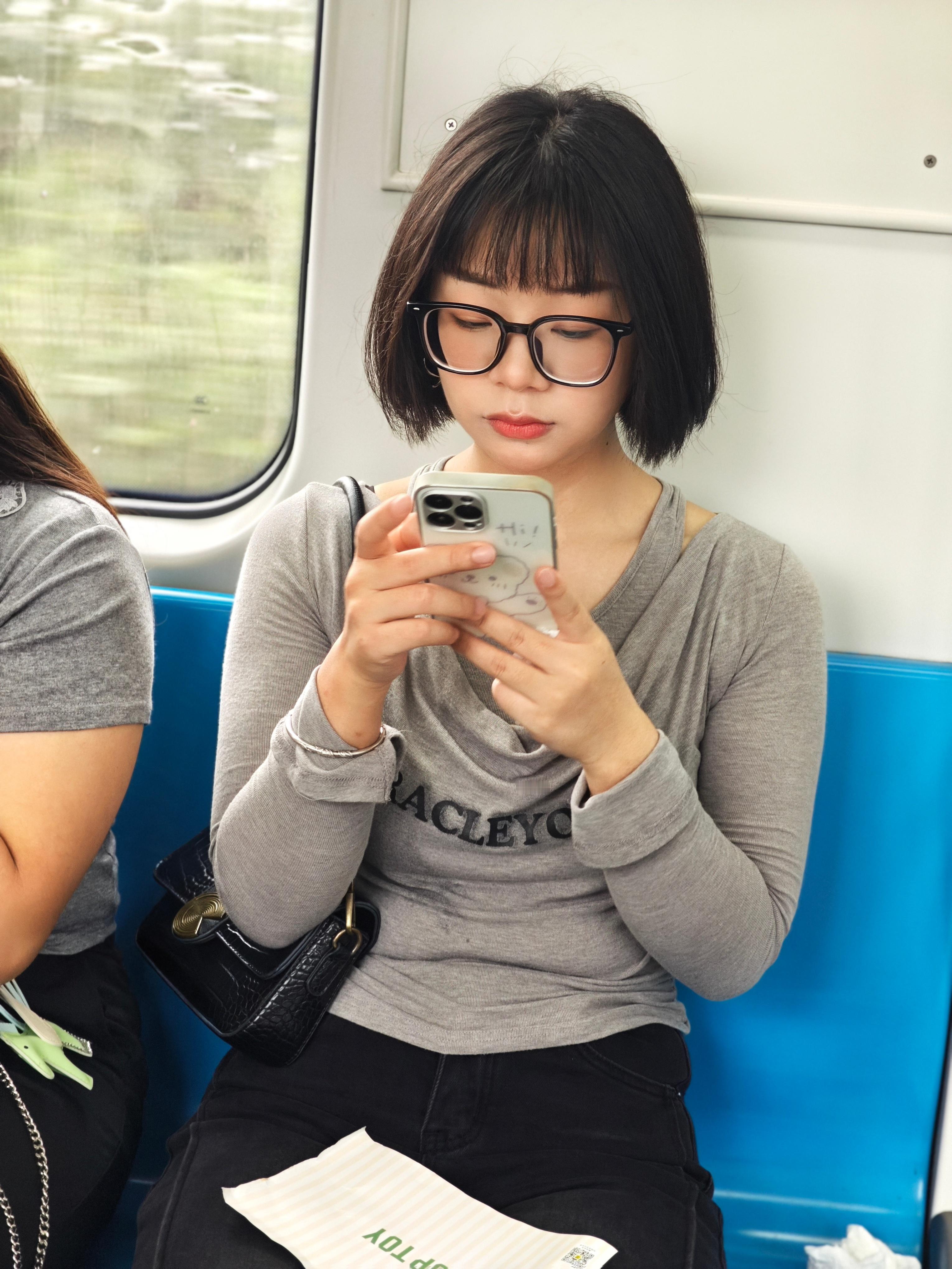 青春洋溢的校园时光,阳光下的少女,手机记录美好瞬间。