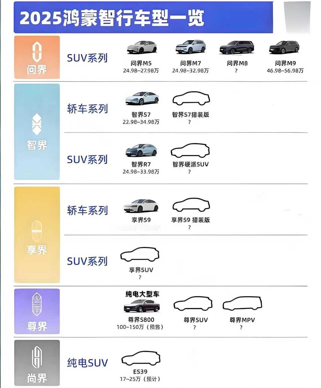 鸿蒙智行2026年核心新车规划以“五界”(智界、问界、尚界、享界、尊界)协同推进,将推出至少12款全新/改款车型,覆盖SUV、MPV、轿跑等主流品类,核心聚焦高端智能与全价格带布局。以下为按品牌梳理的权威信息(截至2025年12月11日): 一、核心规划概览(2026年) 智界:新车数量,2款。核心车型,智界V9(MPV)、跑车级SUV 。发布/上市节点,春季(V9);秋冬(SUV)。核心亮点,鸿蒙智行首款MPV,双动力+华为ADS,性能SUV主打颜值与操控。 问界:新车数量,1款全新+全系改款。核心车型,问界M6(SUV)。发布/上市节点, 2026年亮相。核心亮点,定位M5-M7之间,补齐5/6/7/8/9产品序列。 尚界:新车数量,2款。核心车型,高端轿跑、轿跑SUV。发布/上市节点,春季(轿跑);下半年(SUV)。核心亮点,轿跑对标百万级设计,20-30万元区间,主打颜值与性能。 享界:新车数量,3款。核心车型,硬派SUV、MPV等。发布/上市节点,全年分阶段。核心亮点,含硬派越野SUV,覆盖家用与户外场景。 尊界:新车数量,3款。核心车型,超豪华轿车、SUV、MPV。发布/上市节点,全年。核心亮点,覆盖50-100万元级,含标轴/长轴版MPV,配高速L3级智驾。 二、分品牌详细规划 1. 智界(奇瑞合作) 智界V9:鸿蒙智行首款旗舰MPV,“V”寓意胜利、“9”代表技术旗舰,提供纯电/增程双动力,搭载华为ADS高阶智驾与鸿蒙座舱,2026年春季首发上市,目标重塑豪华MPV格局。 跑车级性能SUV:设计对标超跑风格,强调高颜值与强性能,计划2026年秋冬推出,进一步完善高端SUV矩阵。 2. 问界(赛力斯合作) 问界M6:全新SUV,定位介于M5与M7之间,2026年推出以补齐“M5-M9”全序列;现有M5/M7/M8/M9将同步迎来全面迭代升级,巩固家用高端SUV市场。 3. 尚界(上汽合作) 高端轿跑:2026年春季发布,定位高于尚界H5,对标欧洲百万级轿跑,主打设计颜值与智能体验,预计售价20-30万元,目标成为鸿蒙智行“颜值担当”。 轿跑SUV:下半年推出,延续轿跑设计语言,强化个性化与运动属性。 4. 享界(北汽合作) 共3款新车,含硬派SUV、MPV及一款未明确车型;硬派SUV已获高调研评价,主打户外越野场景,MPV聚焦高端家用,2026年分阶段上市,完善中高端家用市场覆盖。 5. 尊界(超豪华) 推出超豪华轿车、SUV、MPV各一款,轿车或为尊界S600/S800高定版,聚焦50-70万元级;MPV将提供标轴/长轴双版本,全系搭载高速L3级辅助驾驶,冲击超豪华市场。 三、技术与市场要点 1. 智能驾驶:2026年新车将规模化搭载华为ADS高阶智驾,部分旗舰车型支持高速L3/L3+级能力。 2. 价格覆盖:从15万元(尚界H5)到100万元(尊界旗舰)全价格带,满足家用、个性、豪华等多元需求。 3. 协同目标:余承东表示,2026年“五界”将补齐产品矩阵,下一个百万辆交付预计10余个月完成,加速市场扩张。 四、2025年收尾车型(补充) 智界R9:2025年11月亮相,定位中大型SUV,衔接2026年新品节奏。 尊界S800:2025年5月上市,超豪华轿车,为2026年高端化铺垫。【来自懂车帝车友圈】