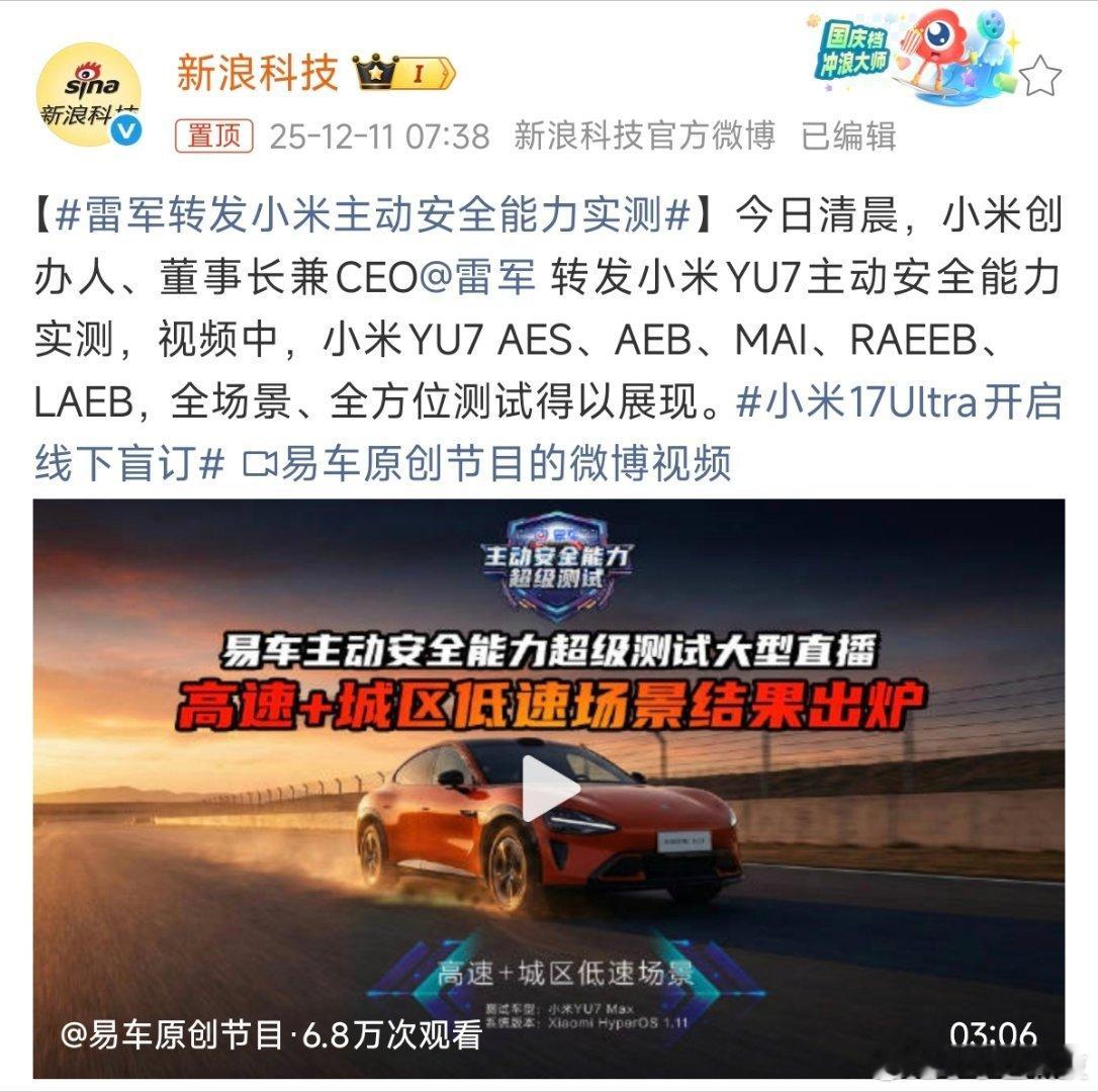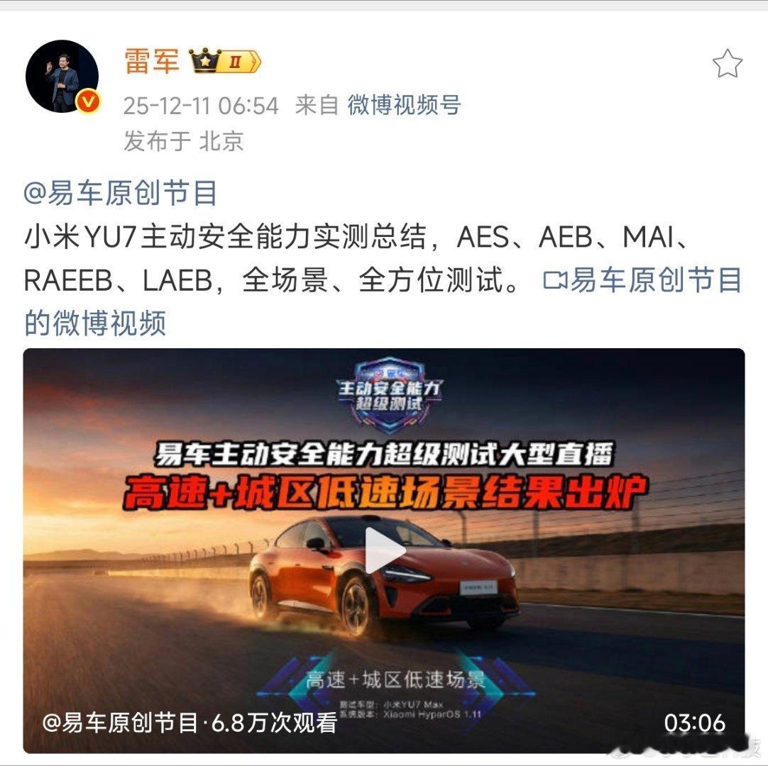 易车针对小米YU7的主动安全进行了测试,测试结果非常令人意外,原本被一直诟病小米智能辅助驾驶,肉眼可见的变得优秀了起来。从2025年3月发布首款汽车至今,1年9个月的事件小米的智能辅助驾驶就发生了质的改变,彻底打脸了“智驾是护城河”的言论。有足够的时间+足够多投入+足够多数据+公司层面的重视,就能够做出好的智能辅助驾驶系统。小米YU7表现出色,接下来就看小米SU7系列继承这套智驾系统的表现了,期待一下。
