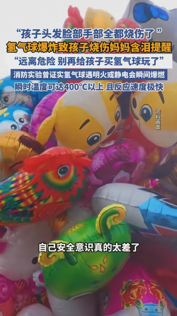 “悲剧还是发生了!”12月6日,河南平顶山,一女子给孩子买氢气球,小孩在玩耍时,氢气球突然发生爆炸,瞬间点燃了孩子的头发,脸和脖子也被烧伤,留下了疤痕,事后女子十分后悔,怪自己安全意识太差让孩子受罪。网友:太可怕了! 那天街头挺冷的,河南平顶山的一位妈妈带着孩子出门,走着走着,孩子就被路边飘着的氢气球吸引住了,那些气球花花绿绿的,印着可爱的图案,飘在半空中特别惹眼,小孩子哪能抵抗得住这种诱惑? 孩子站在原地,眼睛直勾勾地盯着,拉着妈妈的衣角不肯走。妈妈看着孩子期盼的样子,也没多想,觉得不就是个玩具气球嘛,能让孩子开心一整天,花点钱也值,就掏钱买了一个。 谁能料到这个小玩具竟然藏着致命的危险,回到家后孩子果然对这只氢气球爱不释手,走到哪抱到哪,一会儿举着跑,一会儿贴在脸上蹭,脸上满是欢喜。 妈妈看着孩子开心的模样,也放下心来转身去忙活家务,心里还想着幸好满足了孩子的小愿望。她从来没把 “氢气球危险” 这回事放在心上,总觉得那些新闻里的爆炸事件都是小概率,怎么可能偏偏发生在自己身上?这种侥幸心理,终究还是害了孩子。 没有任何预兆平静突然被一声巨响打破,正在做家务的妈妈猛地听见客厅传来孩子撕心裂肺的哭声,心里咯噔一下,赶紧冲了出去,眼前的景象让她瞬间腿软,刚才还好好的氢气球已经炸得粉碎,孩子的头发被点燃,火苗还在往脸上、脖子上窜。 妈妈吓得魂都没了,手忙脚乱地扑灭火焰,抱着孩子就往医院跑,一路上眼泪止不住地流,心里只有一个念头,千万别出事!可再着急伤害已经造成了,医生全力抢救处理后,孩子的命是保住了,但脸上、脖子上还有手上,都留下了清晰的烧伤疤痕。那些疤痕凹凸不平,不仅看着触目惊心,更会伴随孩子一生。 每次给孩子换药,看着孩子因为疼痛哭得撕心裂肺,妈妈的心就像被刀割一样疼,她整日整夜地自责,一遍遍地怪自己,为什么当时不多想一点?为什么明知道氢气球可能有危险,还是抱着侥幸心理买了?如果当初能忍住那份心软,如果安全意识能强一点,孩子就不会遭这份罪了。 这事儿传到网上后,网友们都纷纷感叹 “太可怕了!”,大家都能理解这位妈妈想让孩子开心的心情,可氢气球的危险真的不能忽视啊!氢气球里装的氢气,本身就是极易燃易爆的气体,稍微遇到一点火星,或者受到挤压摩擦,就可能发生爆炸。 可很多家长和这位妈妈一样,只看到了气球可爱的外表,却忘了背后隐藏的致命隐患,总觉得 “应该没事”,可意外一旦发生,就是一辈子的遗憾。 悲剧还是发生了!这五个字里,藏着多少悔恨和无奈。那个飘在空中的氢气球,承载的本该是孩子的快乐,最后却变成了伤人的利器,孩子脸上的疤痕会随着时间慢慢变淡吗?谁也说不准但这段痛苦的经历,还有身体上的创伤,注定会成为孩子和家长心中永远的痛。 其实街头那些花花绿绿的氢气球,早就该引起大家的警惕了,可总有家长抱着侥幸心理,觉得危险离自己很远,可平顶山这起悲剧告诉我们,危险从来都不会因为你的忽视而消失。 作为家长爱孩子不是一味地满足,更要为他们的安全负责,那些看似不起眼的 “小玩具”,可能藏着大隐患,在给孩子买东西之前,多花一分钟想想安全问题,或许就能避免一场悲剧。 (信息来源:《氢气球爆炸致孩子烧伤 妈妈含泪提醒》海报新闻)