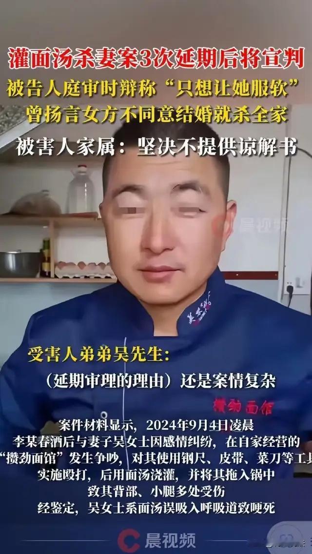 陕西渭南,男子和妻子发生争执,凌晨时分男子用皮带、钢尺、菜刀等殴打妻子,还将她按进六七十度的煮面锅里致死。案发后男子狡辩称,他没有家暴,只是喝多断片了想让妻子服个软。可据检测,男子血液酒精含量仅为37mg/100ml。 据潇湘晨报.晨视频报道,本月12号,本案即将迎来宣判。 据被害人吴女士的家属称,吴女士2岁时丧父,后来随母亲改嫁。 从小到大,吴女士一直因为没有亲生父亲被人嘲笑歧视,童年的经历,养成了她胆小怯弱的性格。 和被告李某认识后,吴女士的父母觉得李某不像善茬,不同意他们结婚,可吴女士执意和李某在一起。 吴女士当初的执意,如今想来满是唏嘘。她大概是太渴望一份能遮风挡雨的感情,太想拥有一个完整的家,才会无视父母的忠告,一头扎进了自己以为的“幸福”里。可她不知道,有些人的坏,是刻在骨子里的,童年缺爱的自卑,让她把李某偶尔的温情当成了救赎,却没看清那温情背后藏着的是魔鬼的獠牙。 婚后的生活,没有吴女士期盼的温暖,反而成了她噩梦的开始。李某的脾气暴躁得可怕,一点小事就能引发他的怒火。起初只是言语辱骂,说她“没人疼没人管”“性格懦弱没出息”,专挑吴女士最在意的痛点戳。吴女士习惯了隐忍,她把所有委屈咽进肚子里,以为退让就能换来安宁,可她的胆小怯弱,在李某眼里变成了可肆意拿捏的软肋。 打骂渐渐成了家常便饭。李某会因为她做饭晚了动手,会因为她没及时回应而发脾气,甚至会因为自己工作不顺心,就把火气全撒在她身上。吴女士偶尔想向父母倾诉,可话到嘴边又咽了回去——她既怕父母担心,又怕被说“当初不听劝”,更怕李某知道后变本加厉的报复。她就像一只被困在笼子里的鸟,叫不出声,也逃不出去。 邻居们其实早有察觉,深夜里偶尔会传来争吵声和哭泣声,可没人敢多管闲事,毕竟是别人家的“家务事”。吴女士的父母也曾偷偷来看过她,每次她都强颜欢笑说“挺好的”,身上的伤痕要么用衣服遮住,要么谎称是自己不小心磕碰的。她用最后的体面,维系着这段早已千疮百孔的婚姻,也把自己推向了万劫不复的深渊。 案发那天的凌晨,没有惊天动地的矛盾,或许只是一句不合时宜的话,或许只是李某单纯想找个发泄口。他像往常一样发起了脾气,可这一次,暴力升级到了令人发指的地步。皮带抽在身上留下一道道血痕,钢尺敲得骨头生疼,菜刀的寒光让吴女士瑟瑟发抖。她蜷缩在角落,一遍遍地求饶,可李某早已被怒火冲昏了头脑。 更残忍的是,他竟然将吴女士强行按进了六七十度的煮面锅里。那是怎样的剧痛?皮肤瞬间被烫伤的灼烧感,骨头仿佛都要被煮化,吴女士的惨叫声撕心裂肺,却没能唤醒李某的一丝良知。直到她没了动静,李某才停下手,可他想到的不是救人,而是如何为自己脱罪。 “喝多断片了想让妻子服个软”,这辩解简直荒谬到了极点!37mg/100ml的酒精含量,只是轻微饮酒,远达不到“断片”的程度,甚至连酒驾的标准(80mg/100ml)都没到。他比谁都清楚自己在做什么,所谓的“服软”,不过是他施暴的借口,是他骨子里对妻子的蔑视和控制欲在作祟。他根本没把吴女士当成平等的伴侣,只把她当成了可以随意打骂、肆意发泄的工具。 吴女士的家属得知噩耗后,整个家庭都垮了。她的母亲哭得撕心裂肺,一遍遍捶打着自己的胸口:“都怪我,当初没拦住她!”那个从小就受委屈、渴望被爱的女孩,最终没能等到属于自己的幸福,却死在了最该保护她的人手里。她2岁丧父,童年被歧视,以为婚姻能给她依靠,没想到却是一场致命的灾难。 这起案件不是简单的“家暴致死”,更暴露了部分施暴者的嚣张跋扈,以及受害者在原生家庭影响下的困境。吴女士的胆小怯弱,让她在暴力面前选择了隐忍,可隐忍从来换不来尊重,只会让施暴者更加肆无忌惮。而那些旁观者的沉默,那些“家务事”的刻板印象,也在无形中纵容了暴力的发生。 如今,案件即将宣判,所有人都在期盼一个公正的结果。希望法律能还吴女士一个公道,让施暴者付出应有的代价,也希望这起悲剧能给所有人敲响警钟:家暴不是家务事,而是违法行为;退让换不来和平,反抗和求助才是唯一的出路。如果你的身边也有正在遭受家暴的人,请不要沉默,多一份关注,多一次援手,或许就能挽救一个生命。 各位读者你们怎么看?欢迎在评论区讨论。