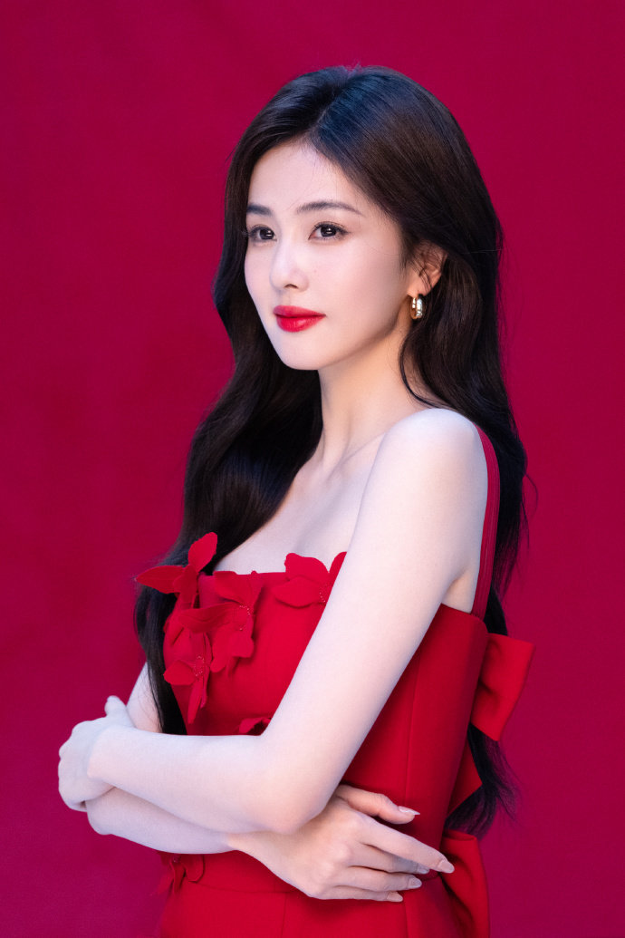 白鹿明媚红玫瑰造型白鹿明媚红裙造型 好美和红色好适配!