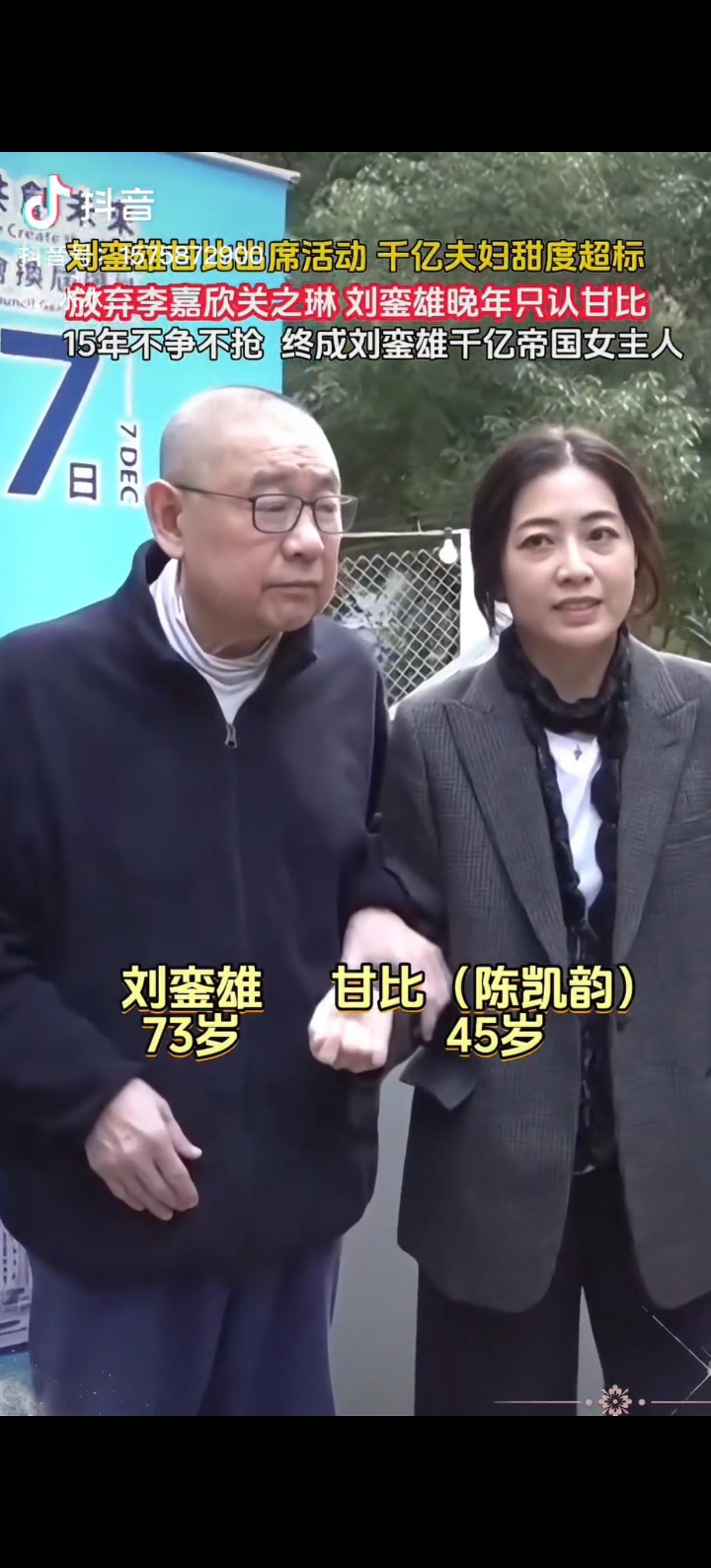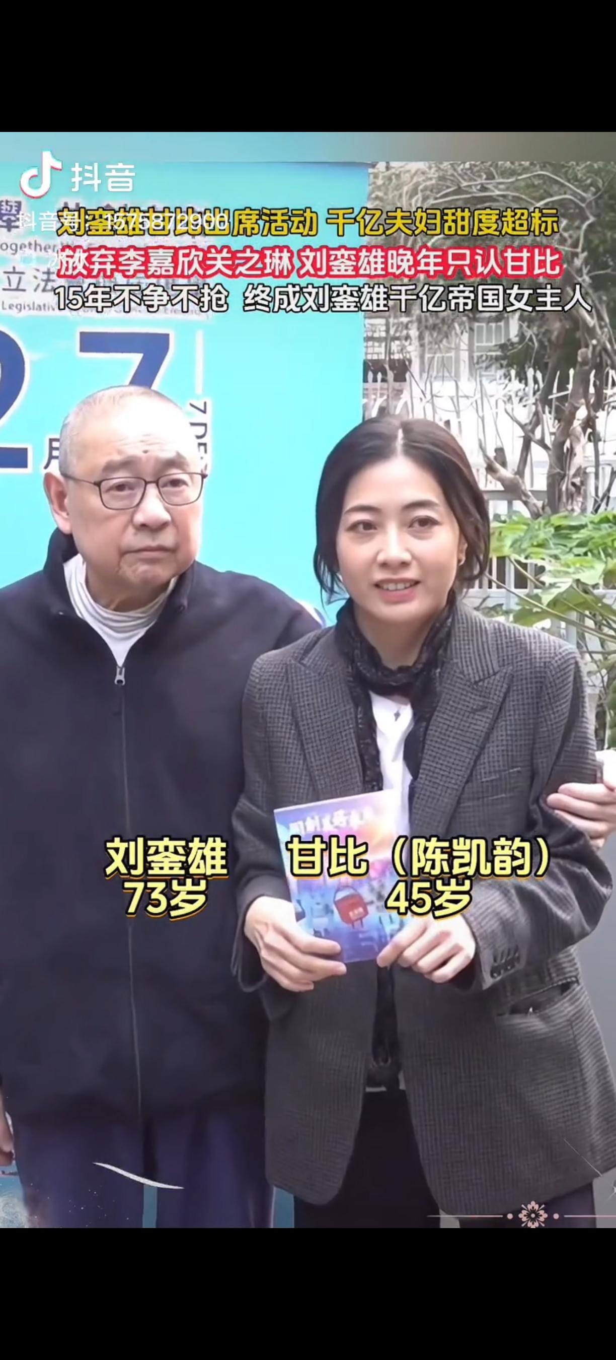 一代枭雄,老了以后反而像个小孩儿一样,乖乖的站在老婆身边,等她采访完。虽没了当年的英勇,但已回归家庭,甘比15年的不争不抢,终成大刘千亿帝国女主人。 刘銮雄年轻时在商界风光无限,身边围绕着不少女星,李嘉欣、关之琳都曾是他的红颜知己。可到了晚年,他却把所有的信任和依靠都给了甘比。 甘比从一个普通的娱乐记者,一步步走到千亿帝国女主人的位置,靠的不是争风吃醋,而是15年的默默陪伴和不争不抢。她从不参与豪门纷争,只是安安静静地守在刘銮雄身边。 现在的刘銮雄,出席活动时总是紧紧牵着甘比的手,甘比接受采访,他就像个听话的孩子,乖乖站在一旁等着。曾经叱咤风云的枭雄,在甘比面前没了丝毫锐气。 有人说甘比运气好,捡了个大便宜。但只有了解的人才知道,在豪门里能15年保持低调,从不争抢,这需要多大的智慧和隐忍。她的这份沉稳,才是她最终胜出的关键。 如今,甘比把偌大的家业打理得井井有条,刘銮雄也安心享受着晚年的平静。这对曾经不被看好的组合,用时间证明了,有时候不争不抢,反而能赢得一切。 各位读者你们怎么看?欢迎在评论区讨论。