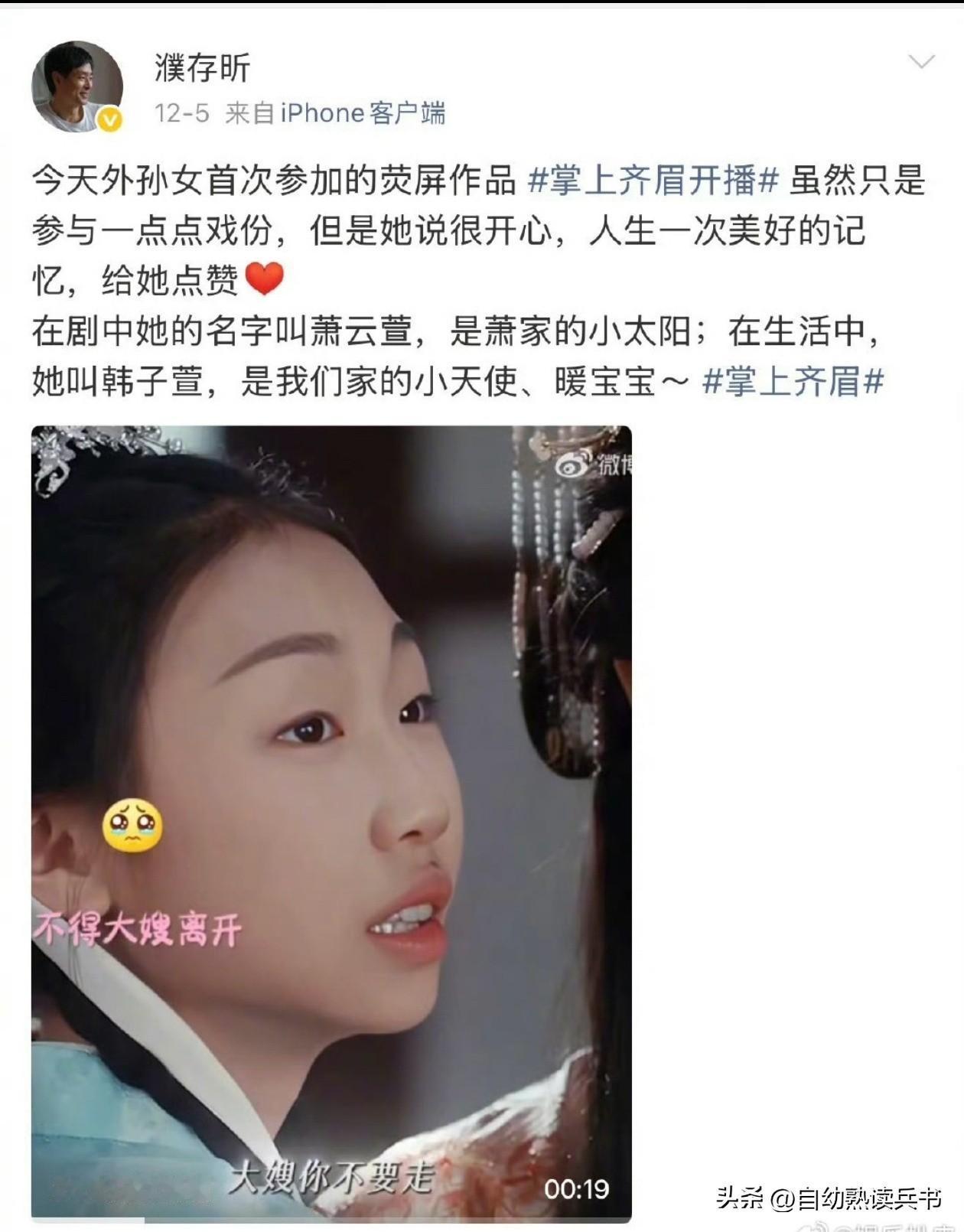 72岁濮存昕为外孙女站台,却遭大量容貌恶评。 沈腾曾经说过,为什么演戏,原因很简单,就是因为这玩意儿来钱快。 濮存昕是名利双收的艺术家,但是他外孙女不是呀,她也想进步,她也想来钱快呀,但作为姥爷,只能支持啊,“虽然只是参与一点点戏份,但是她说很开心。”姥爷看外孙女当然是怎么看都喜欢了。 但在娱乐圈,脸真的是至关重要,因为这是一个非常吃颜值的行业。这涉及到背后的隐形产业链,粉丝群体。 比如,一个男明星长的帅,但是他耍大牌,女粉丝就会觉得他是在耍帅。 再比如一个女明星长的漂亮,但是说话不文明,骂脏话,但在男粉丝眼里却会觉得她很接地气,很可爱。 就像郭德纲所说的那样,娱乐圈是要建设自己的人设的,因为你需要吸引自己的粉丝。 当你在网上被攻击时,你的粉丝会帮你。当你拍新戏时,你的粉丝会帮你宣传。 濮存昕外孙女想要继续在演艺圈发展,这第一波恶评甚至以后的恶评,她必须独立承受住,因为这是她的必经路。 我们用小沈阳的女儿做对比。同样长的不是那么有识别度,同样也是前期遭到了各种的恶评。哪怕是在小沈阳如此有国民辨识度的亲老子的带领下,都如此艰难。 你这更难了。