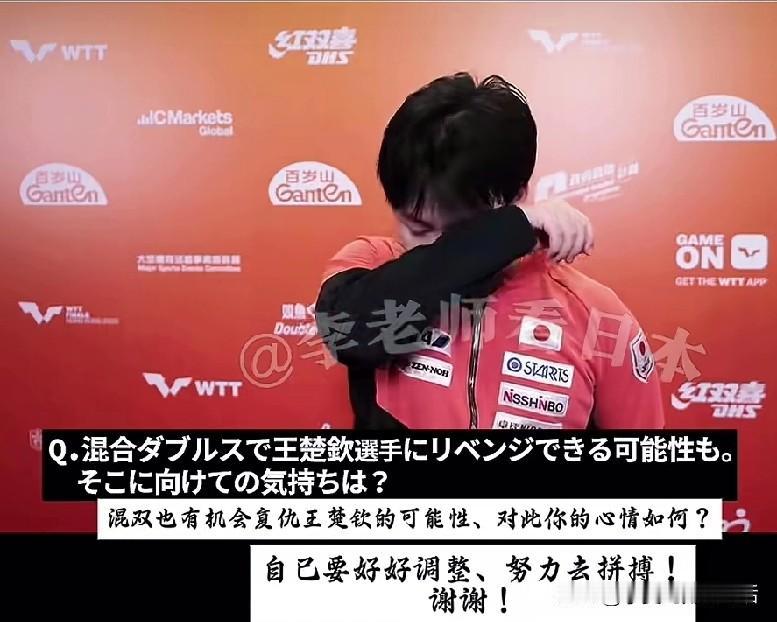 松岛辉空扬言要复仇。松岛辉空香港总决赛3:4输了王楚钦一轮游后说除了惋惜就是懊悔,再就是复仇。 香港总决赛松岛辉空在3:1领先的情况下被王楚钦逆转后,在后场崩溃落泪。整理情绪后接受采访眼睛里仍能看得出泪花。 他说本想着年终总决赛有个好的结束,没想到还是输了。还是在自己有绝对优势的情况下想得过于简单和随意。很惋惜也很懊悔,今后一定要更加提高竞技水平,下次要战而胜之。我和张本美和还有混双,我们要团结一心打好混双,在混双上也能复仇他。说到这的时候松岛辉空用袖子擦拭了下眼角。看来这次松岛辉空真的痛彻心扉了。混双也要好好打了。