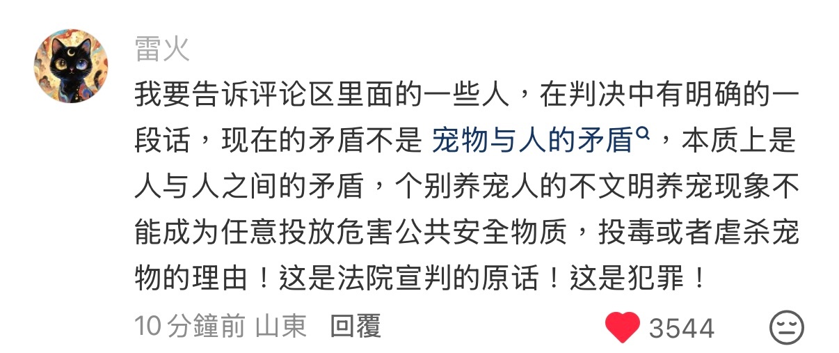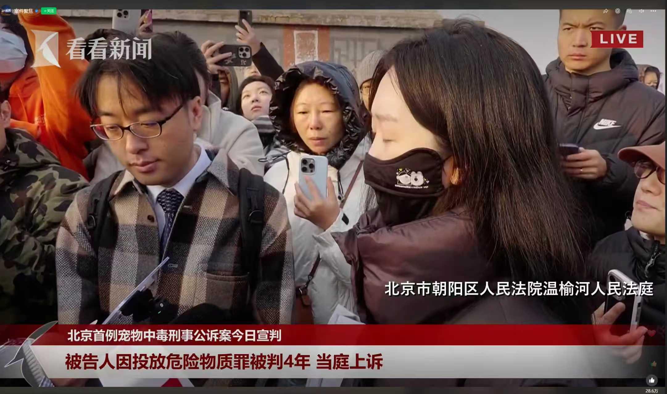谢谢papi妈妈的坚持!北京首例宠物投毒刑事公诉案一审宣判,被告人张某华因投放危险物质罪被判处有期徒刑四年,当庭提出上诉。-判决书原话:现在的矛盾不是宠物与人的矛盾,本质上是人与人之间的矛盾,个别养宠人的不文明养宠现象不能成为任意投放危害公共安全物质、投毒或者虐杀宠物的理由!这是犯罪!-男子毒死9条宠物狗一审宣判