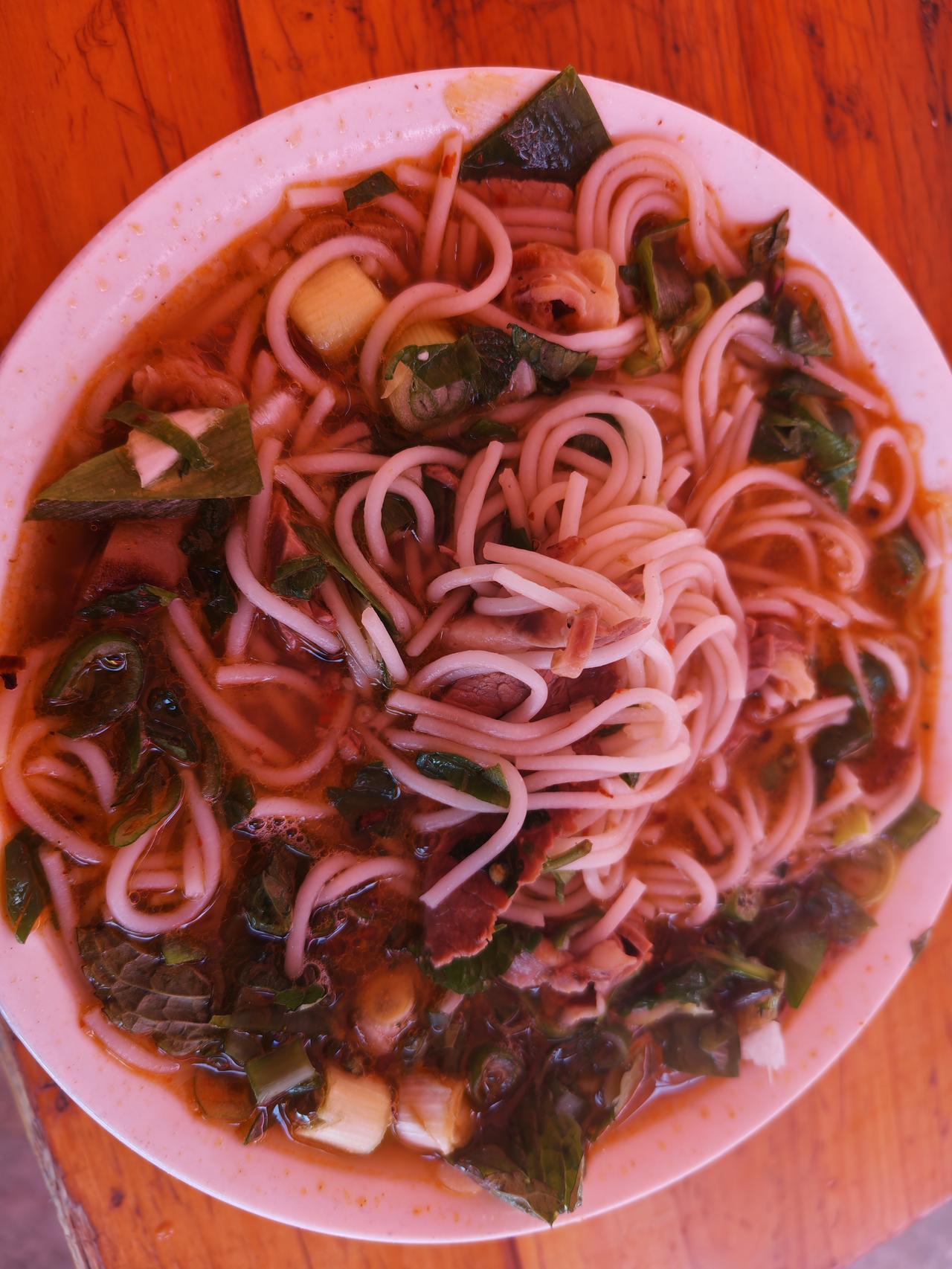 【太平新城农贸市场的羊肉米线很一般】很久没到昆明安宁市太平新城赶街(集),趁着休息,今天去逛大集。 太平的盛华街又叫中心集贸市场,是昆明最热闹的乡村集市之一,方圆数十是闻名遐迩。 今天赶集我甩了碗羊肉米线,加了羊肉共计36元。但感觉羊肉很一般,虽然都是汤锅,但没泸西羊肉米线好吃。 另外,羊肉米线摊点设在集市上,摊主切羊肉时从不戴一次性手套,铁锅也是随便用水一冲就使用,个人感觉卫生堪忧。 两年没到红河州泸西吃汤锅羊肉米线了,本以为太平的羊肉米线可以追比泸西的羊肉米线。 可我失望了! 昆明农贸市场 昆明赶集 昆明农贸菜市场