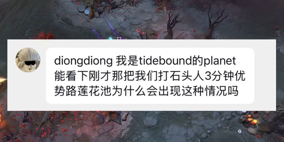 著名机制科普up主diongdiong最新一期视频接到了来自战车四号位Planet的投稿(自称是行星神本人但咱也不能100%确定),他问在Blast的比赛中为啥Y队bane明明已经用梦游将敌人拉离了莲花池只剩自己一人在池内却无法采集,答案是当时Y队身上9个格子被全部填满了,没有多余能装莲花的格子自然也就无法采集,这个视频的评论区有很多水友开玩笑称Planet是借着求助的名义公开处刑脑浆Y,如果行星神真没串而是在认真提问的话,那战车这么多人一起看录像都找不出原因也是蛮搞笑离谱的