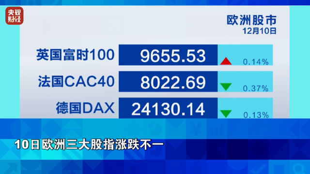 10日欧洲三大股指涨跌不一