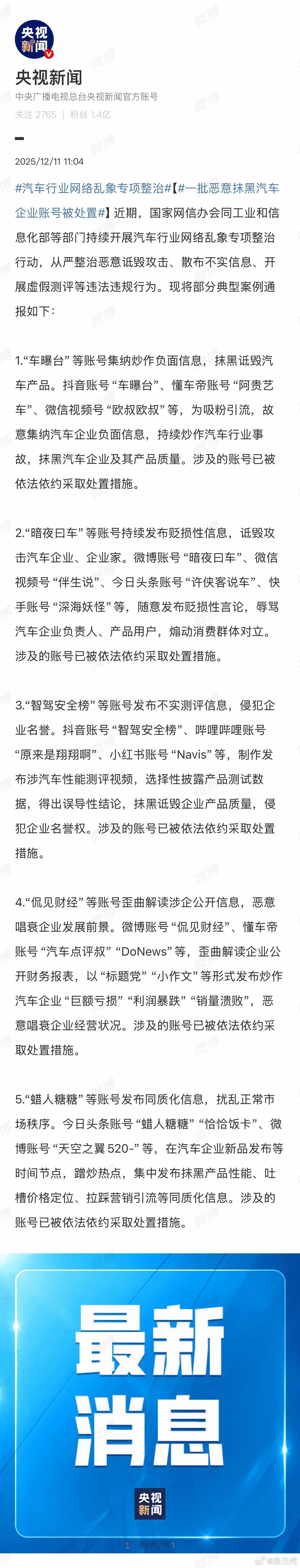 一批恶意抹黑汽车企业账号被处置在网上说话还是要谨慎,看到一些消息时也要核查消息来源。有些恶意抹黑的你真的看不出来,一不小心就被别人带了节奏