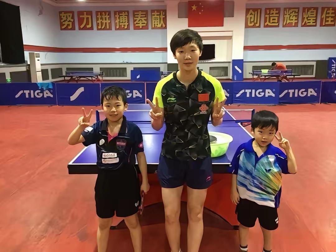 王曼昱夺得了多少冠军,连她自己可的也数不过来 身边这两个小帅哥又是谁孩子,跑来找曼昱大姐姐切搓切槎的吧 再看川岛辉空几年前与中国女队合影时,还是一个矮胖娃,几年过去,川岛辉空竟然长成了大小伙子,还成了国乒劲敌。 川岛輝空说,他偶象就是孙颖莎,他把孙颖莎当成了榜 榜样不分国界和肤色。 孙颖莎真的成了乒乓球运动员和爱好者的榜样。