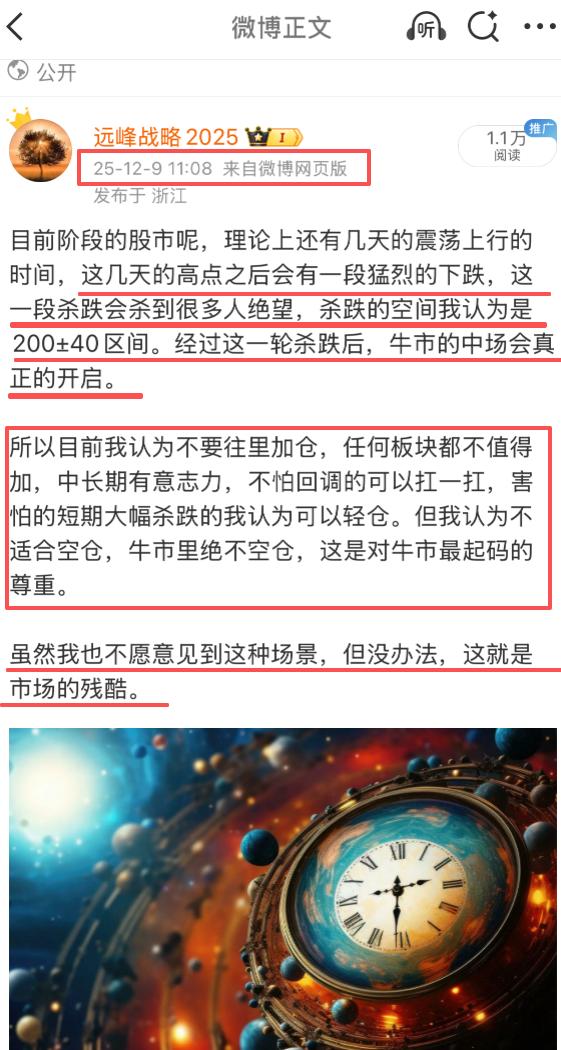 4034.08点就是2025年的最高点了,不要幻想2025年剩下的20个交易日再创新高,这是不可能的。放弃幻想,放弃抵抗,放开胸襟坦然接受中场开启前自由落体式地坠落冰点。 心理承受能力强的,能承受接下来这一轮坠落的,躺平,卧倒没问题,承受能力不强的,减仓,轻仓度过也没问题,这两类人的策略我认为都是正确的,未来的路也是光明的。 有两类人会有大问题,一类人是心理承受能力不强,但短期又患得患失的,另一类人则是抱着过去的观念无法转变的,这两类人在这轮牛市中会有大问题,未来的即便是牛市也将举步维艰,四处碰壁。 这个位置,坠入冰点的速度越快,力度越猛,中场的斜率才会更斜,高度才会越高。