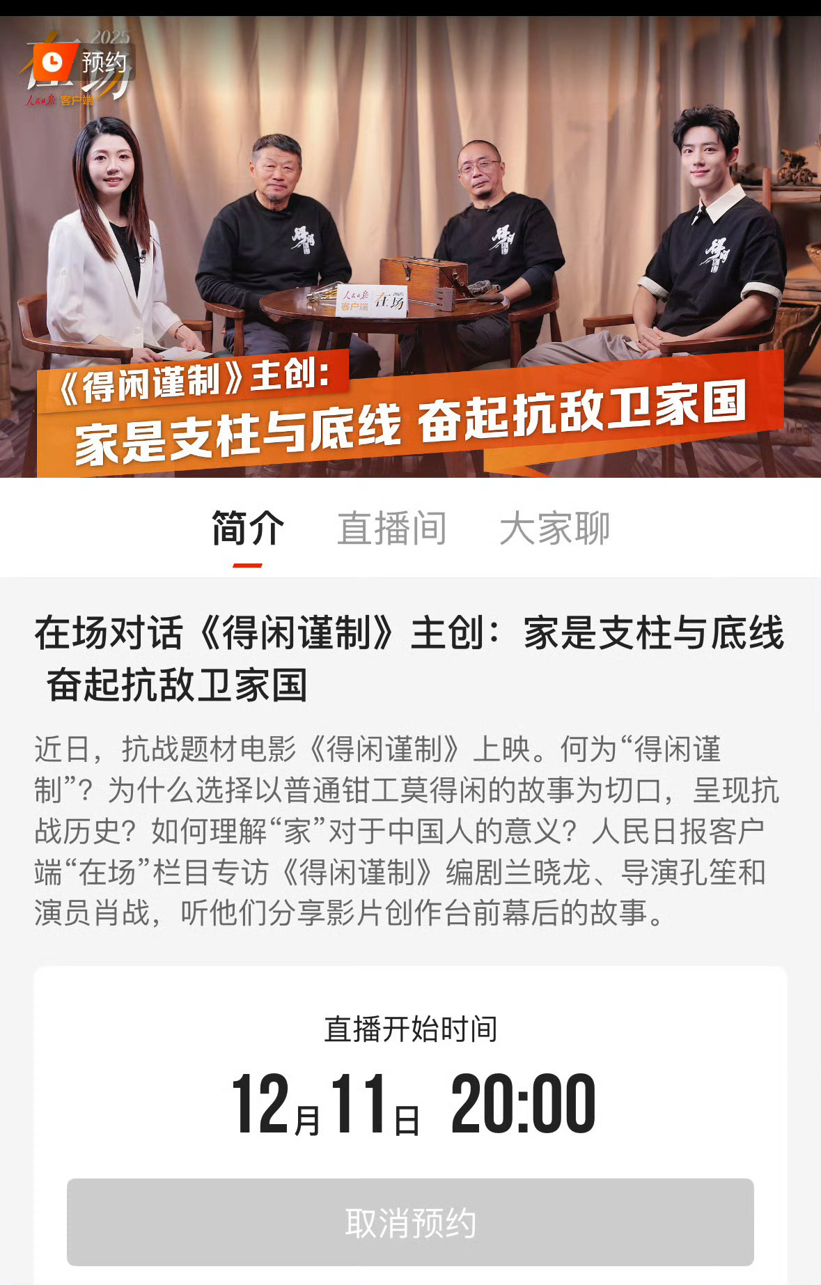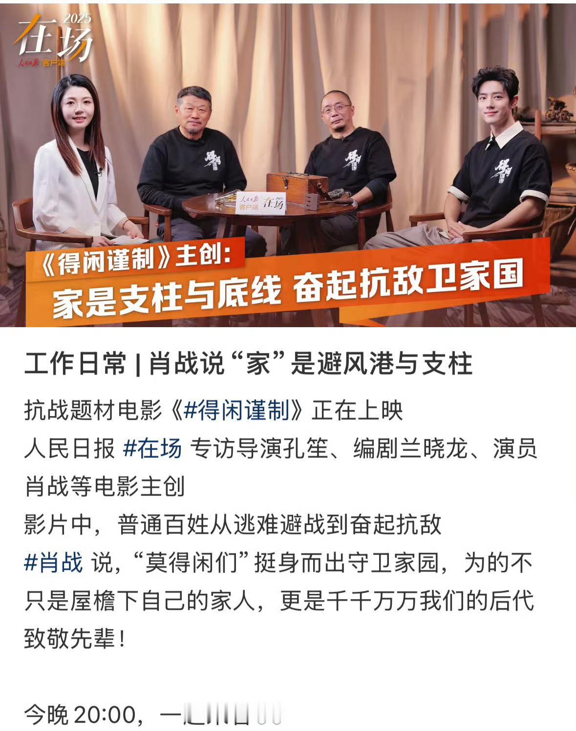 得闲谨制主创兰晓龙,孔笙,肖战,今晚人民日报8:00直播还有谁不知道吗?