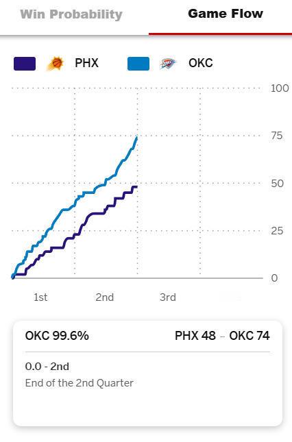 太阳真的足够努力了,但雷霆在上半场最后1分44秒三分球4投全中,半场三分19中13,领先优势已经来到了26分。雷霆炸响,豪雨倾盆。如果今天雷霆获胜,他们就将成为NBA史上除2015-16赛季勇士以外,唯一一支赛季开局前25场取下24胜1负的球队。谁来阻止雷霆